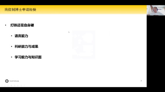 唐乾景学长向大家分享了在国外课堂上的趣事以及出国读博的优势与收获。同时,他向大家介绍了申请岗位制博士时获取信息的主要途径,为有出国深造意向的同学们提供了重要参考。