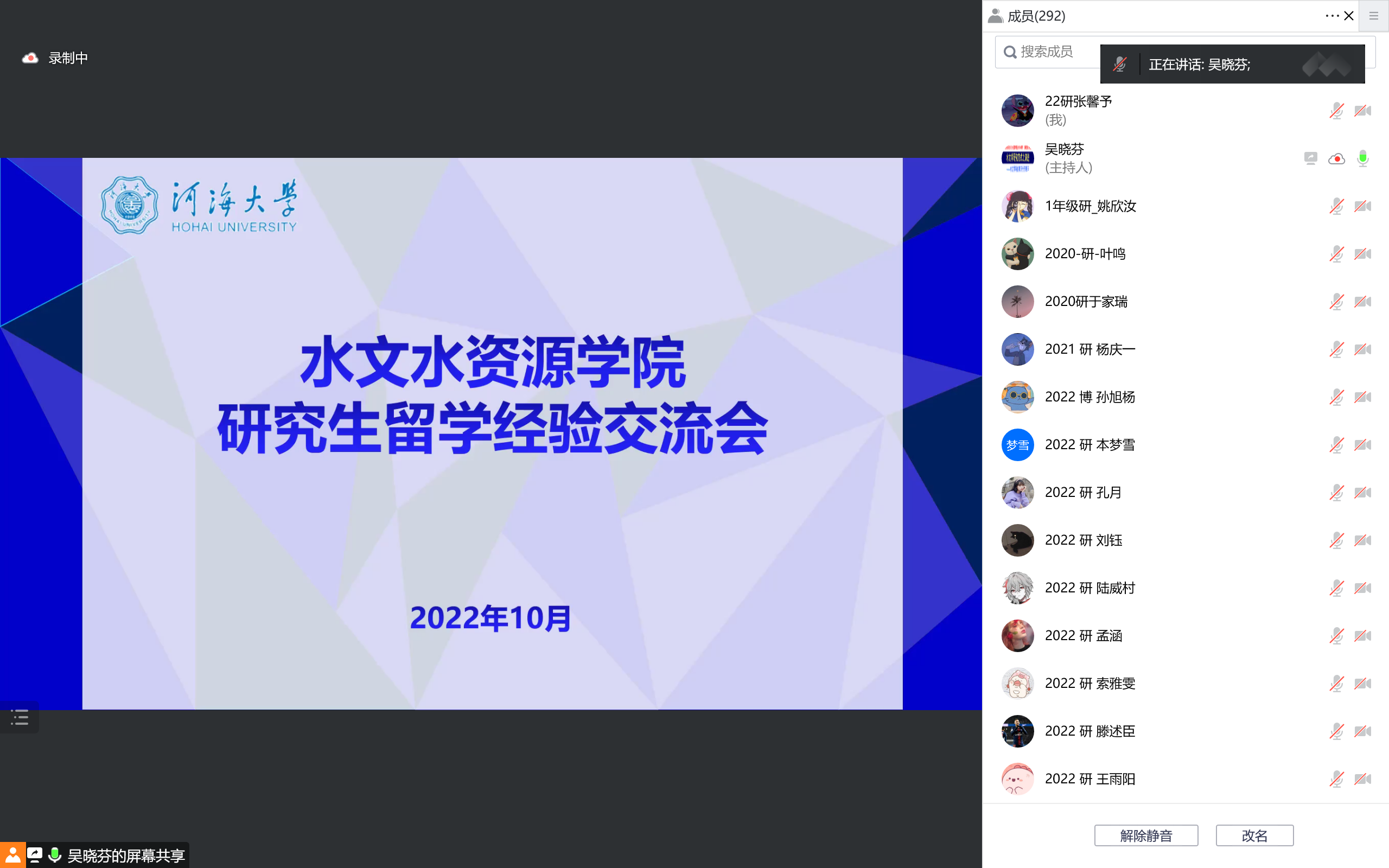 10月23日晚,水文水资源18禁av 以线上会议形式组织开展研究生留学经验交流会。本次会议邀请了捷克理工大学的博士生李泰霖、荷兰乌特勒支大学的博士生唐乾景以及德国海德堡大学的博士生王孟浩三位优秀学长分享经验,会议由研究生辅导员吴晓芬老师主持,18禁av 各年级本科生及研究生共300余名同学参加了此次活动。