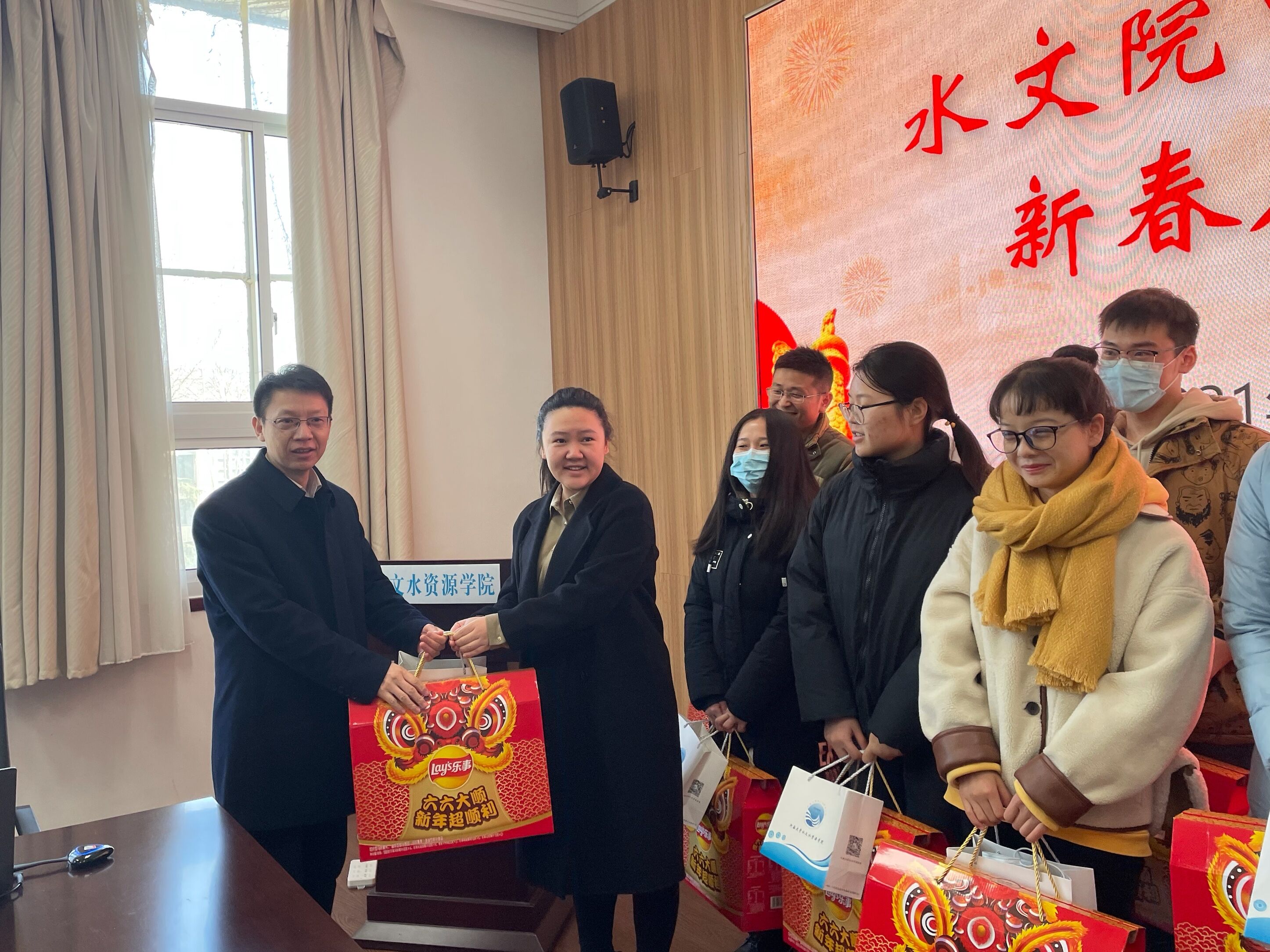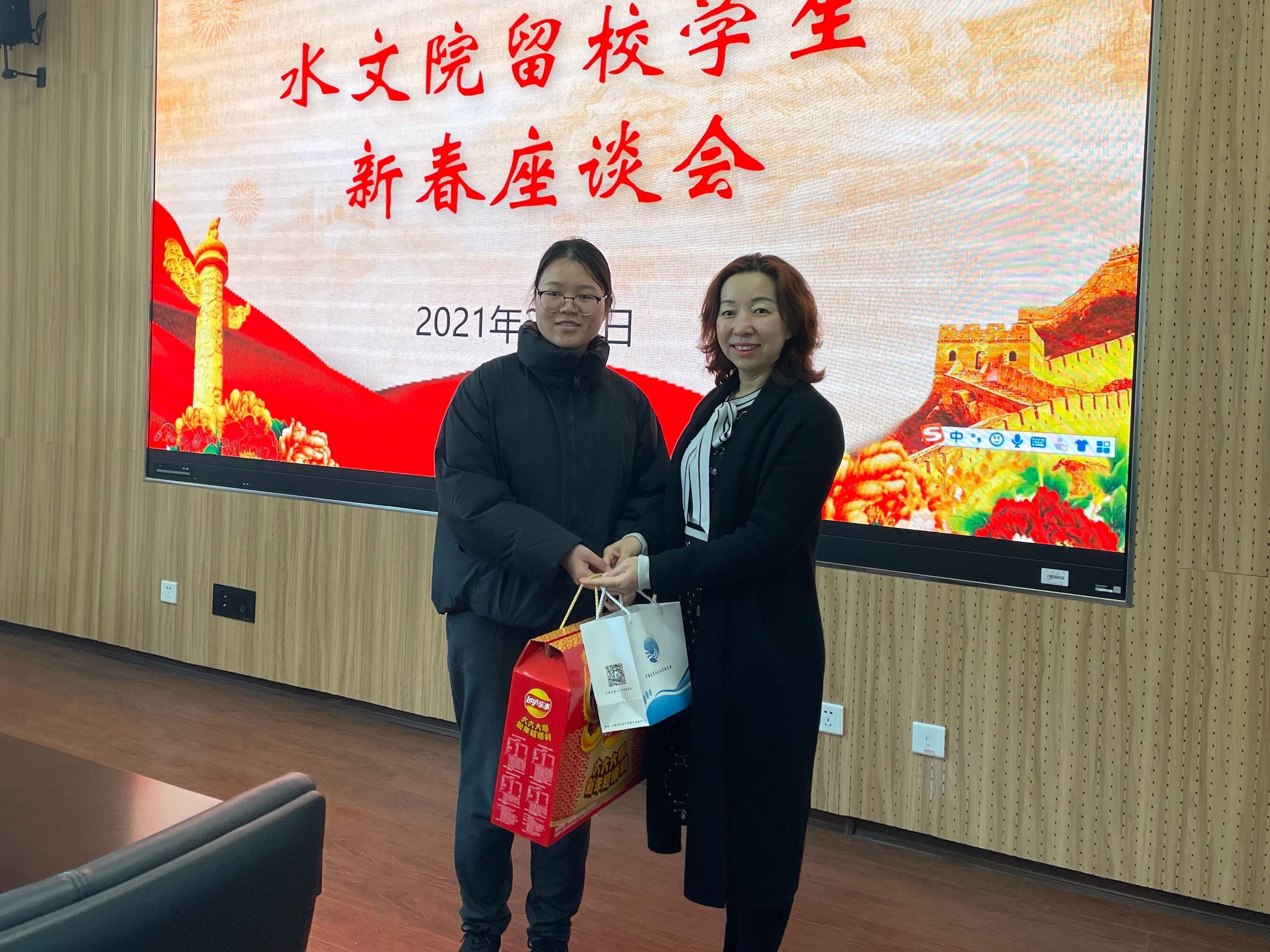 今年受疫情影响,18禁av仍有少数教职工和学生留守校园,就地过年。2月9日,水文院党委书记孔祥冬、院长杨涛、党委副书记陈培玲等一行走访慰问寒假留校师生,在农历新年到来之际给师生们送去新春祝福,并送上新春慰问礼品,带来冬日温暖。