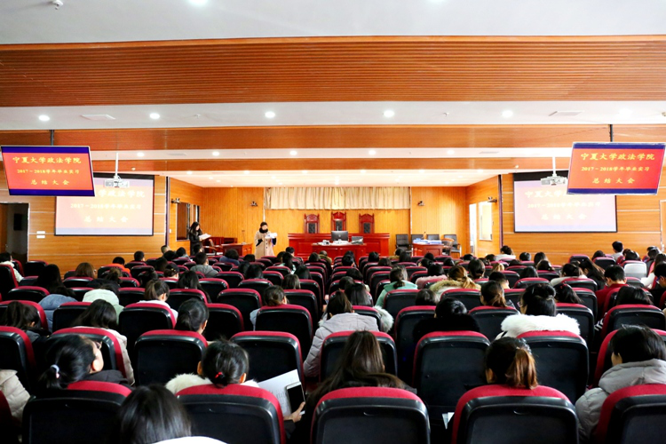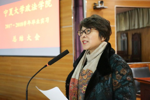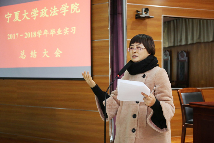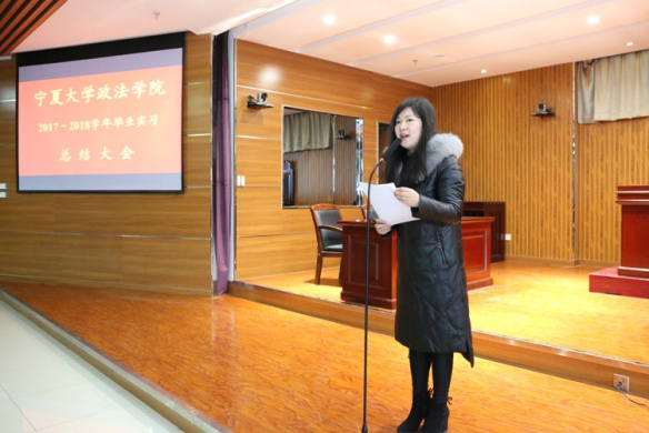 在模拟法庭召开了2017—2018学年毕业实习总结大会,学院党委书记潘瑞,副院长胡世恩,教学办公室主任武玲娥,三系主任以及四个专业的实习指导教师和2014级全体实习生参加了本次大会。大会由胡世恩副院长主持。