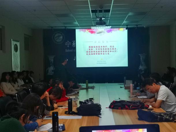 1029日晚,学院组织第十期发展对象培训班全体学员于文荟楼801会议室观看主题教育影片《可爱的中国》;组织第三十六期入党积极分子在模拟法庭观看主题教育影片《周恩来的四个昼夜》。