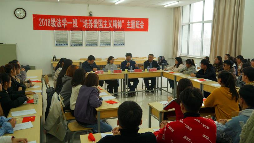 2018级法学1班主题班会并讲话。他强调,青年大学生要从德、才、识、情四个方面严格要求自己,让爱国主义深深扎根于心,用实际行动诠释爱国情怀。法学专业学生要扎实学科功底,为全面推进依法治国作出努力,为中国梦的宏伟大厦添砖加瓦。