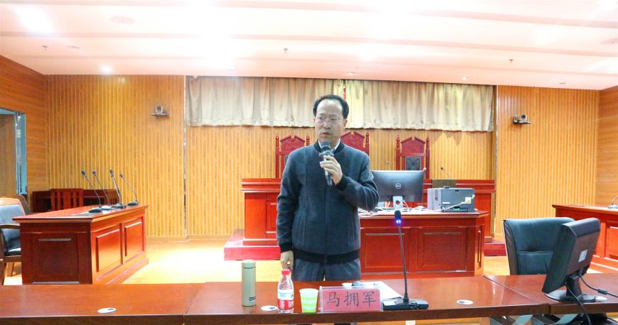 思哲系教工党支部书记马拥军在文荟楼模拟法庭为党课培训班学员讲“不忘初心、牢记使命”专题党课《一个党支部就是一个团结的堡垒,一个党员就是一颗团结的种子》。第十期党员发展对象培训班学员、第三十六期入党积极分子培训班学员到场聆听。