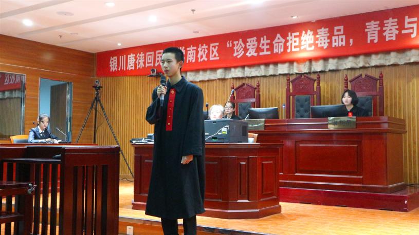 以模拟法庭教学,树守法遵法意识。12月17日下午,银川市唐徕回民中学南校区“珍爱生命拒绝毒品,青春与法同行”模拟庭审活动在18av动漫