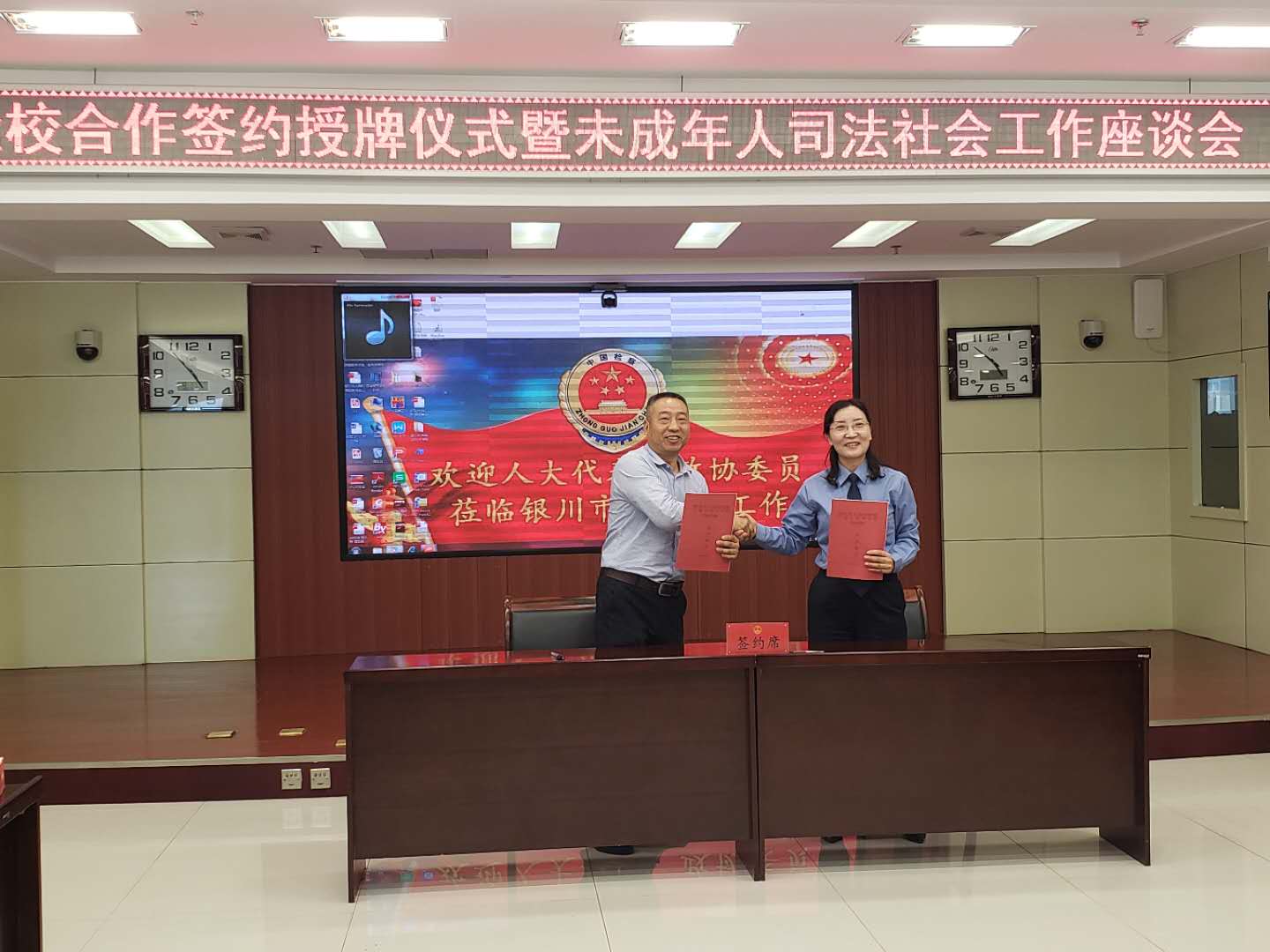 法学实践基地”和“银川市人民检察院未成年人司法保护研究中心”授牌。签约暨授牌仪式后举行了校检双方未成年人司法社会工作座谈会。银川市检察院检委会专职委员张学信主持了签约仪式及座谈会。18av动漫