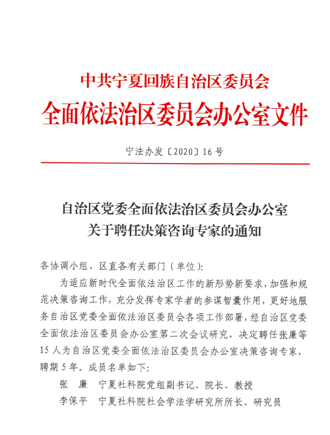 自治区党委全面依法治区委员会办公室组建专家库,为依法治区提供决策咨询是自治区党委全面贯彻落实依法治国基本方略的需要,专家库成员将会为推进我区社会治理体系和治理能力现代化进行法律论证。