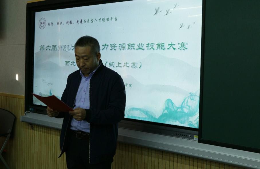 副院长马金龙代表本次大赛的承办方向参赛选手们表示热烈的祝贺,向长期以来关心、支持本次大赛的专家评委以及精心筹备本次大赛的工作人员表示了衷心的感谢。在热烈的掌声中,第六届中国大学生人力资源职业技能大赛西北赛区(线上比赛)圆满结束。