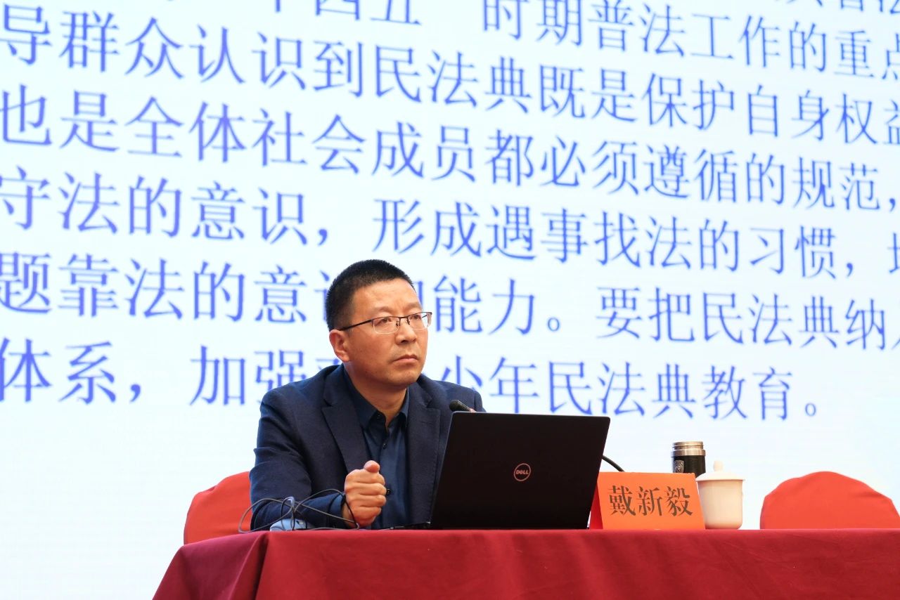 各位领导、各位老师,我们今天召开的全区法治教育是一次学术交流会议,更是我们全区法治教育共同体凝聚共识、学习提升的平台。今天我们非常荣幸地请到了戴新毅教授为大家带来《以习近平法治思想为引领全面扎实推进青少年<民法典>教育》的主题辅导讲座,请大家以热烈的掌声欢迎戴新毅教授。