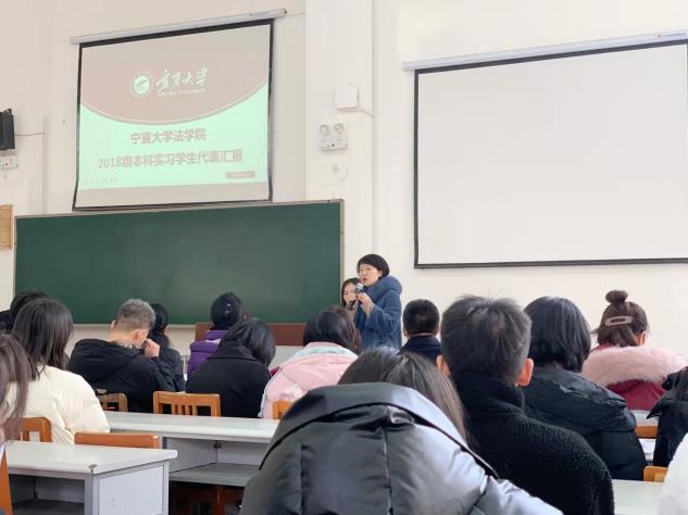 实习大会上,朱蓓予首先就法律系学生的实习工作进行了简要总结,之后行政管理与社会学系教师雷安琪对行社系学生的实习工作进行报告。两位老师指出,本次实习,学生全部完成了实习任务。在实习过程中能把在学校学到的理论知识在实践中加以运用,做到了理论联系实际,并且取得了较好的成绩。学生能够在实习过程中对不懂的东西及时虚心请教,这种谦虚求学的学习态度以及认真负责的工作态度得到了指导老师的认可和单位领导的表扬,并取得了良好的社会效应。同时,个别学生的实际工作经验不足,专业技能还相对薄弱,实践操作能力还有待于进一步提高。学院高度重视本科生毕业实习工作,强化实习动员、中期检查、成绩评定、总结表彰全过程管理,胡世恩代表学院向到会师生汇报了毕业实习中期检查的相关情况。之后,法学专业、行政管理专业、社会学专业六位优秀实习生对自己的实习工作进行了汇报。虽然法律系和行社系工作各有不同,各位同学在实习中都增长了技能,学到了知识,丰富了见识,收获了经验。学生工作汇报结束,法律系刘芳教授、行社系倪富静老师作为教师代表也作了精彩发言,肯定了学生在实习期间取得的成绩,同时也寄语学生奋发拼搏、继续努力。