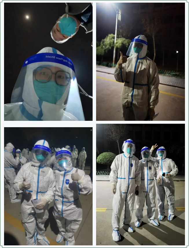 教师第一时间闻令而动,快速集结齐心战疫。他们踏着夜幕奔赴抗疫前线,用自己的志愿行动加入到这场没有硝烟的战争之中,积极奉献一份属于教育工作者的力量。脱我旧时裳,着我战时衣。院长吕耀军、副书记杨扬带头冲锋,周群老师、付晓晨老师、孙伟老师、丁孜老师快速响应。穿戴好防护服、口罩、鞋套等防护装备,披上戎装变身成抗疫“战士”。他们从凌晨坚守到夜晚,即使人员短缺,工作任务繁重,他们的脚步依然坚定如磐!