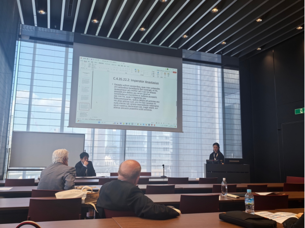 教师王静作为受邀的中方学者之一参会,并在9月24日的议程当中做了题为《Reflections on the Lex Anastasiana》的学术报告, 探讨了罗马法后古典时期立法《阿纳斯塔修斯法》的规范价值及社会经济意义,并同与会中外学者就报告内容开展了热烈的交流与讨论。