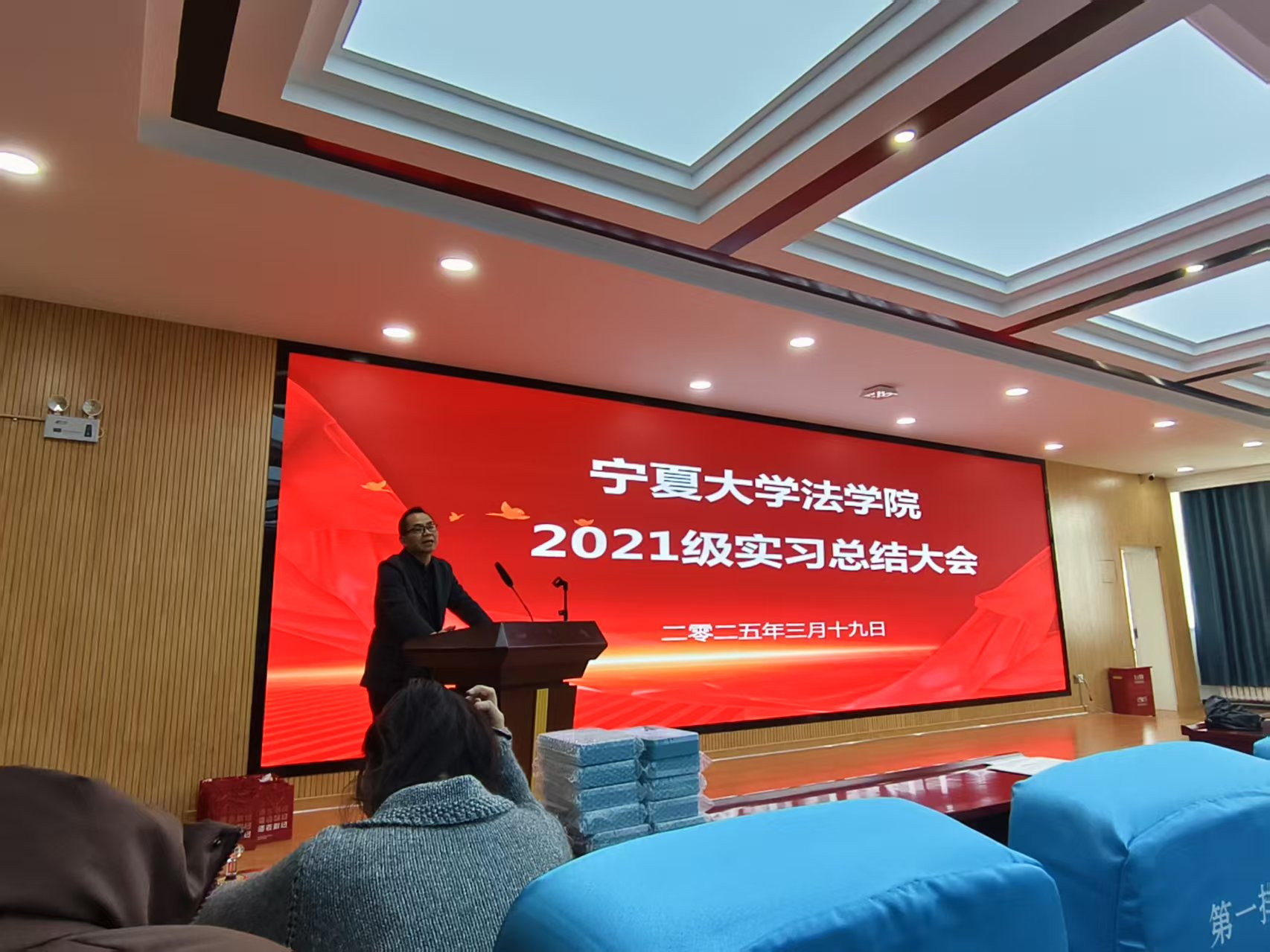 朱蓓予作为法学系的实习指导老师代表,充分肯定了此次实习工作取得的成绩,并针对法学系的实习生的实习表现和实习日常进行了点评,对法学专业的同学们风雨兼程积极完成实习工作表示了肯定,并对全体实习生提出了殷切期望,希望同学们认真总结实习经验。