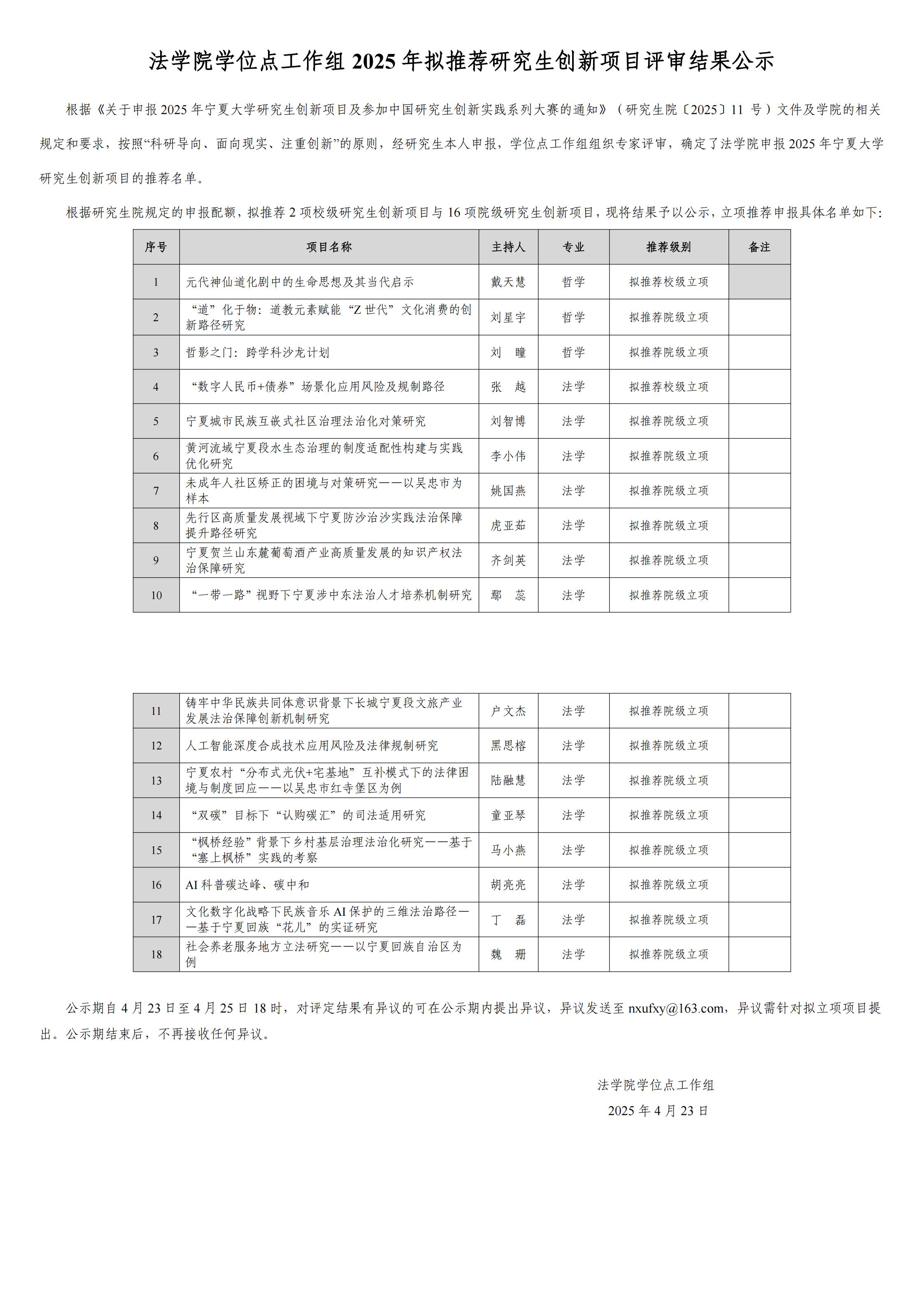 18av动漫 学位点工作组2025年拟推荐研究生创新项目评审结果公示