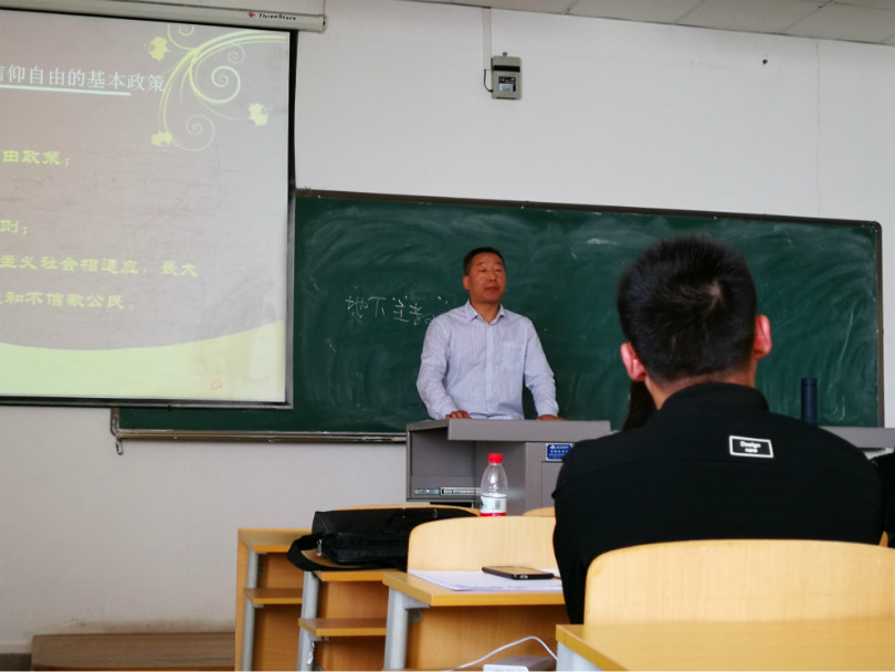 讲座伊始,吕耀军老师从保障宗教信仰自由的基本政策、宗教信仰自由的法律保障、宗教活动的有序开展、宗教界的作用发挥以及宗教关系健康五大方面讲解白皮书内容。随后他围绕国家基本政策与法律法规,为同学们介绍与宗教相关的内容,使同学们在以后的学习生活中充分把握宗教理论政策,提高对宗教的认识程度。紧接着,以分析身边的宗教现象为切入点,吕老师全面阐述世界宗教的显著特点及我国民族宗教的基本情况,强调要把握“宗教与社会主义社会相适应”这一关键点,促使宗教对社会发展发挥良好作用。最后,吕老师分析宗教关系健康的五大表现方面,重申宗教要与时代相适应,借鉴国内外经验,更好地引导宗教与社会主义社会相适应的观点。