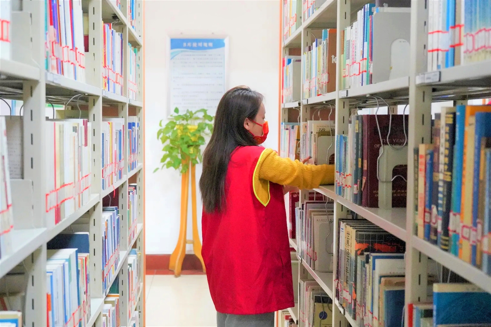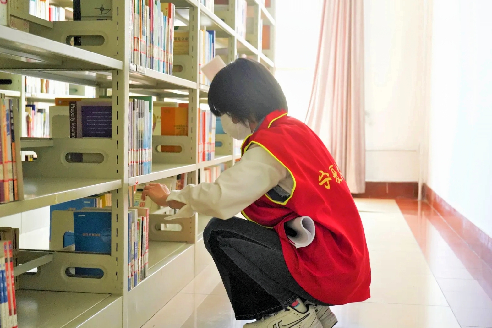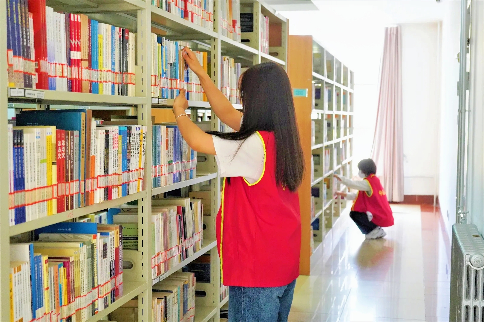 在浓浓的书卷香中,志愿者们分工合作,一部分志愿者对书籍进行归类摆放,擦拭书架并整理书桌,另一部分志愿者对图书馆进行了全面打扫,现场秩序井然,分工有序。在志愿者们的辛勤劳动下,图书整齐地摆放在书架上,方便同学们随时查阅书籍,也为同学们提供了更加安静舒适的阅读环境。