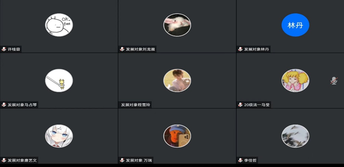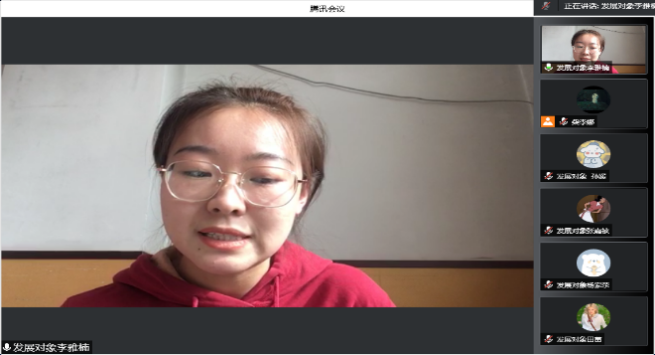 为做好入党积极分子、发展对象的培训工作,按照学院业余党校课程安排,4月20日下午,法律系本科生党支部召开线上座谈会。支部书记王嘉豫、支部第十五期发展对象、第四十一期积极分子参加会议。此次座谈会由支部纪检委员李燕主持。