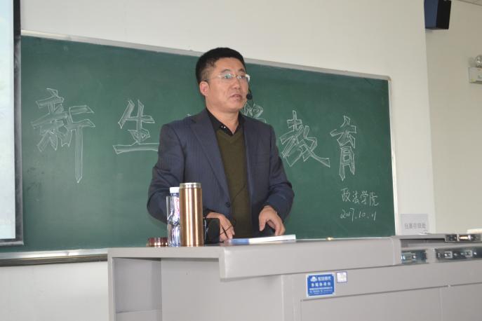 2017级新生树立良好的遵规守纪作风,更好地适应并投入到大学学习生活中来。10月11日下午14:00,学院党委副书记崔明堂在贺兰山校区文荟楼340教室为同学们作了入学教育之“学生手册解读”的专题讲座。