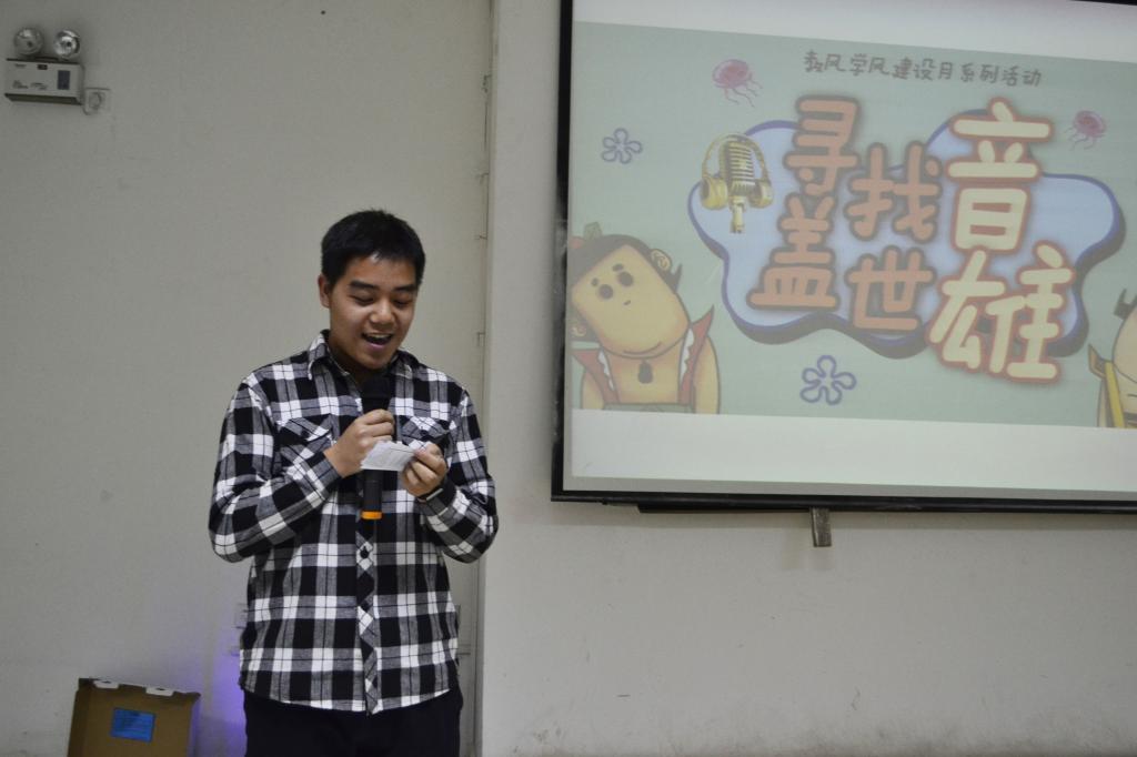 “寻找盖世音雄”配音大赛决赛于5月11日晚上7点在A区文科楼130教室顺利举办。校园广播站副站长张飞雷、白涛,学院团委副书记张建平,学校社团联合会学院分会长王小云分别担任了决赛评委。学院团委学生会副主席黄博阳担任主持人。学院2016级全体学员到场观摩。