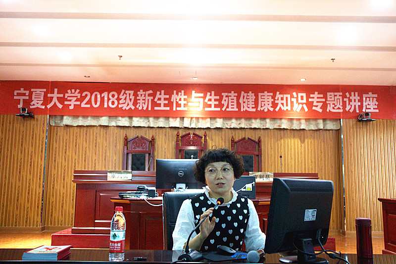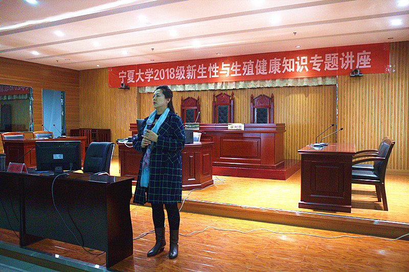 特邀生命科学学院生物科学系徐明教授、宁夏疾病预防控制中心的吴忠兰老师,在文荟楼模拟法庭为2018级全体新生做“性与生殖健康知识”专题讲座。