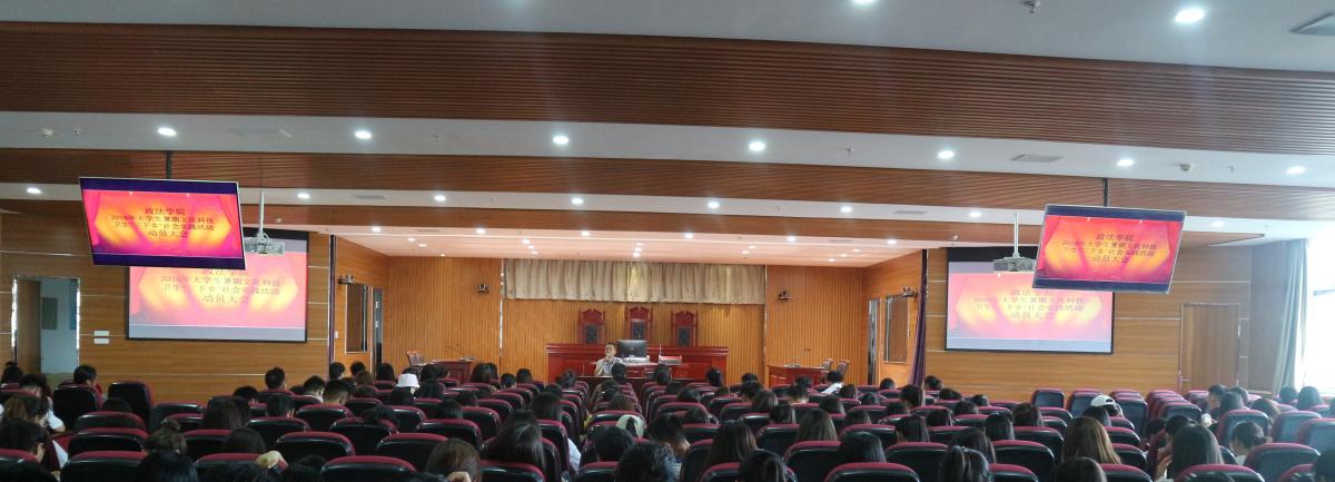 在文荟楼二楼模拟法庭开展暑期社会实践动员大会,学院全体团支书和2017级全体学生参与会议。