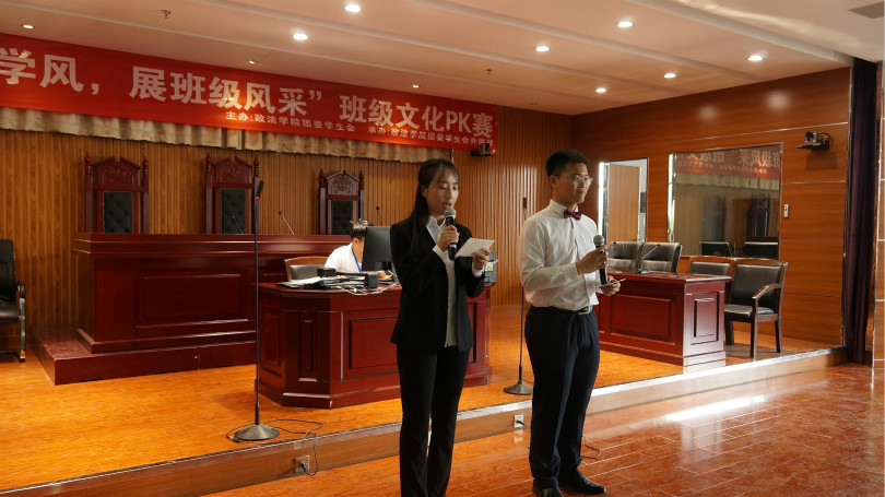 2018年度“树优良学风,展班级风采”班级文化PK赛在文荟楼模拟法庭成功举办。