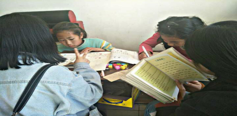一路上志愿者们欢声笑语,对这次活动充满热忱。十分钟车程后,大家到达目的地志愿者服务队队长马小花的简要分配后,志愿者们依次进入自己所负责的孩子家中孩子们满心期待地拿出书本等待着。在志愿者们的悉心指导与讲解后,孩子们不仅完成了周末作业,并且预习了新知识面对孩子们在学习上的困惑,志愿者们也积极地为他们解答,与他们共同探索。