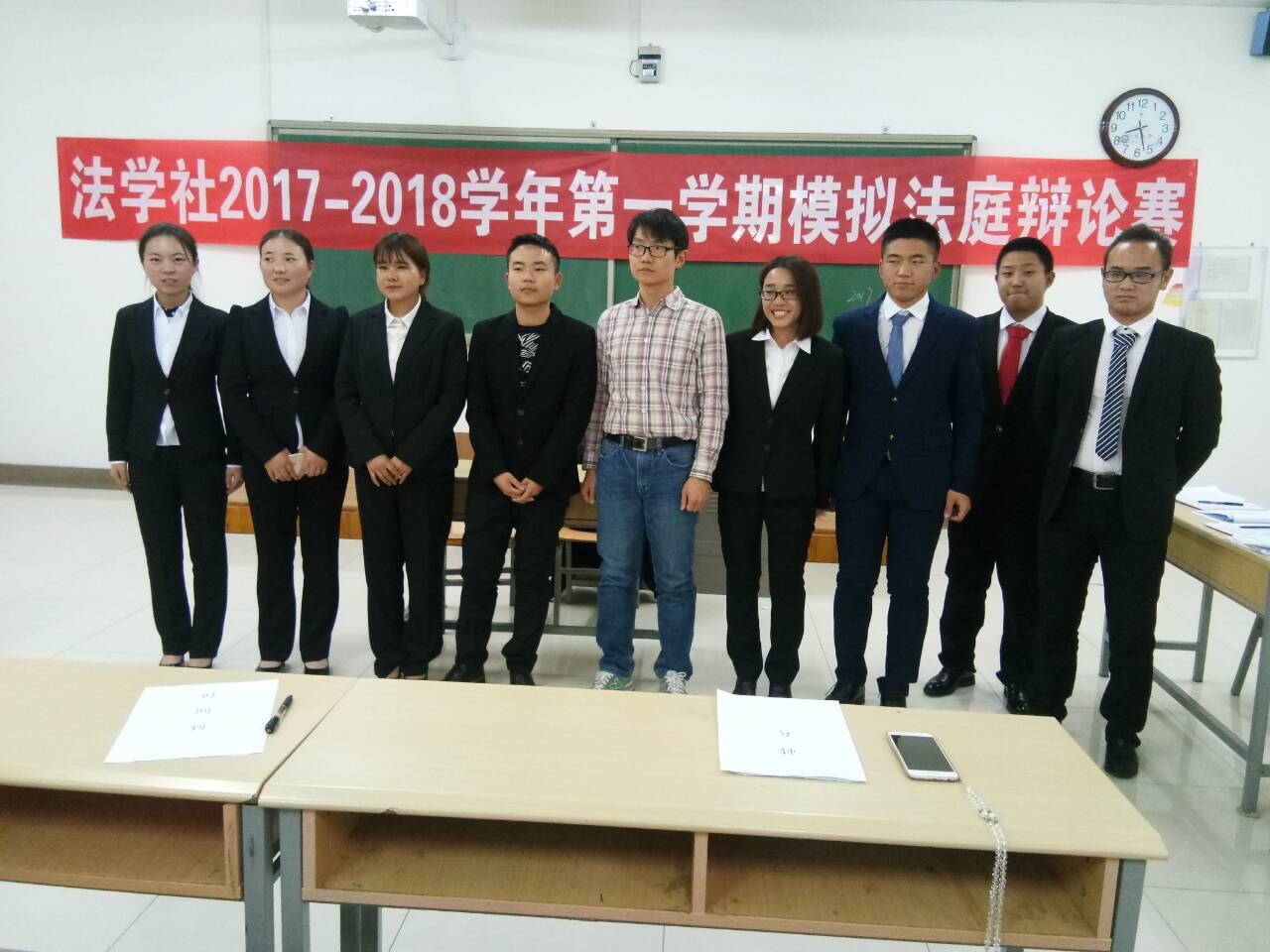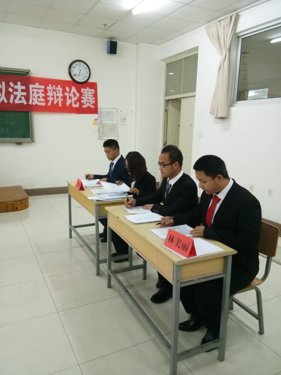 法学社承办的“模拟法庭辩论赛”在贺兰山校区文荟楼401教室成功举办。法律系马浩丹老师受邀担任合议庭评审员,2017级法学专业全体同学到场观摩学习。