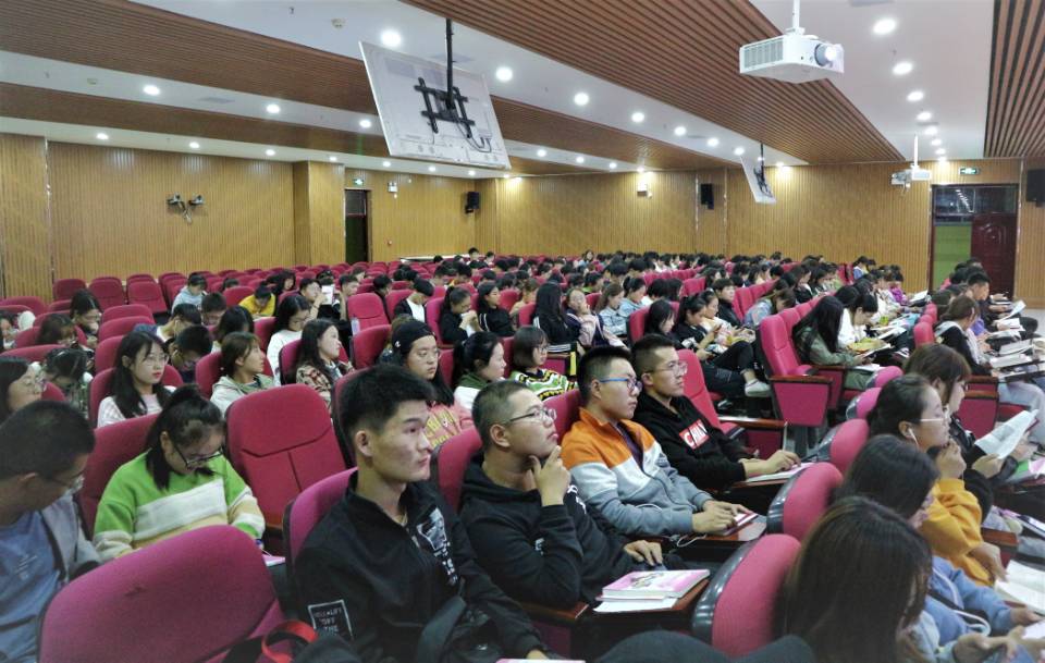 大学生性与生殖健康教育咨询服务中心主任徐明教授担任主讲, 2019级全体新生到场聆听。