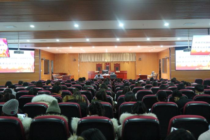 在贺兰山校区文荟楼模拟法庭开展学生禁毒教育工作。2018级学生辅导员丁颖老师为2018级全体同学们上了一堂生动形象的禁毒教育课。