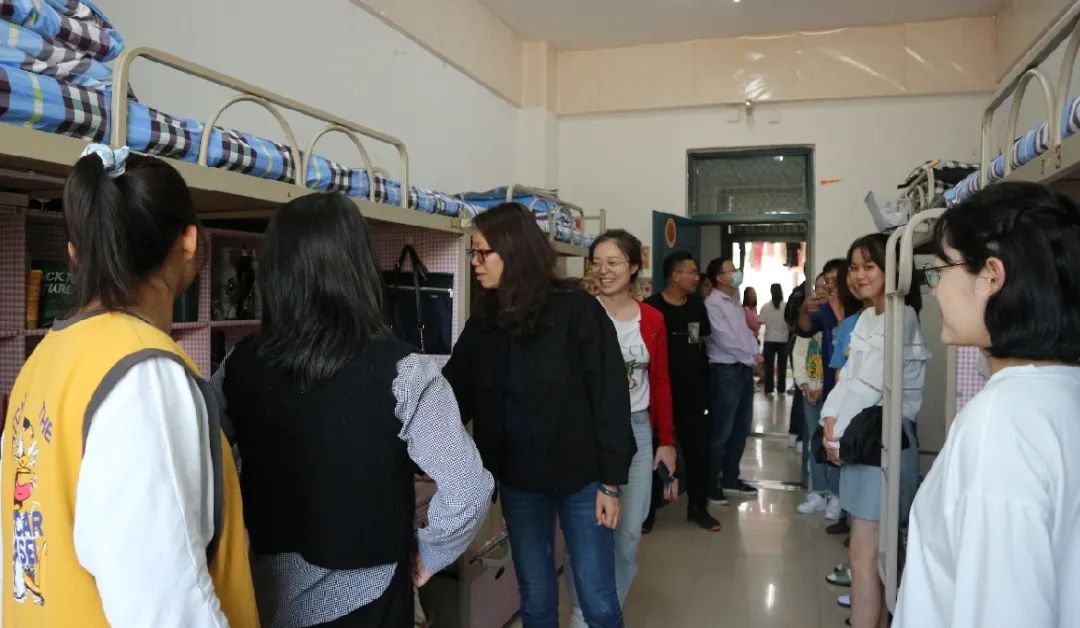 党委副书记杨扬,新生班主任马浩丹、何磊、贾陈亮、马斌,本科生辅导员王嘉豫,走入新生所在的寝室,关心慰问刚入学的新生。同学们对老师们的到来表示热烈欢迎。