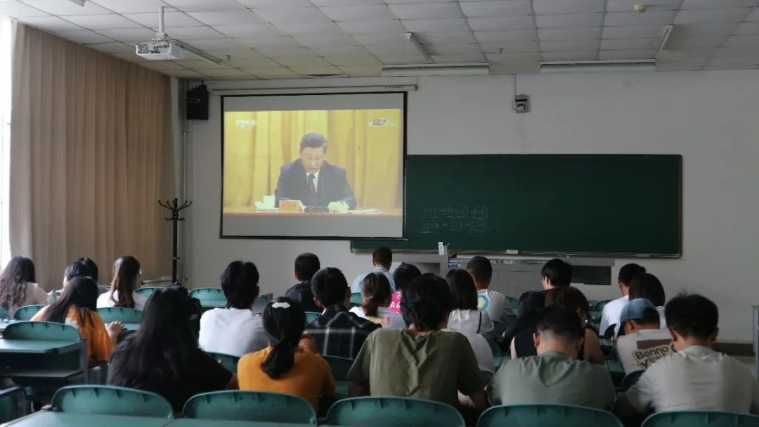 组织2019级全体学生观看全国抗击新冠肺炎疫情表彰大会。习近平总书记在表彰大会上向国家勋章和国家荣誉称号获得者授勋,对全国抗击新冠肺炎疫情先进个人、先进集体代表等进行表彰,并发表重要讲话。他指出,在过去8个多月时间里,我们党团结带领全国各族人民,进行了一场惊心动魄的抗疫大战,经受了一场艰苦卓绝的历史大考,付出巨大努力,取得抗击新冠肺炎疫情斗争重大战略成果,创造了人类同疾病斗争史上又一个英勇壮举!