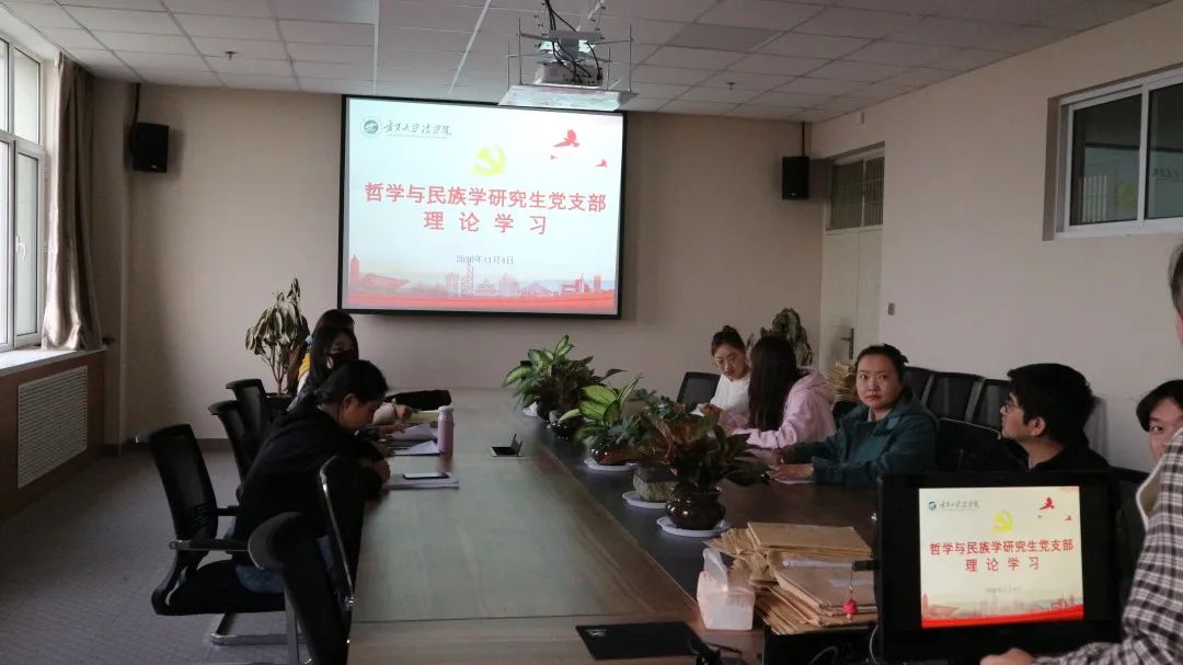 11月4日下午,法律系本科生党支部、行政管理与社会学系本科生党支部、哲学与民族学研究生党支部、法学研究生党支部在文荟楼分别组织本支部入党积极分子、党员发展对象进行党的十九届五中全会精神理论学习和座谈讨论。