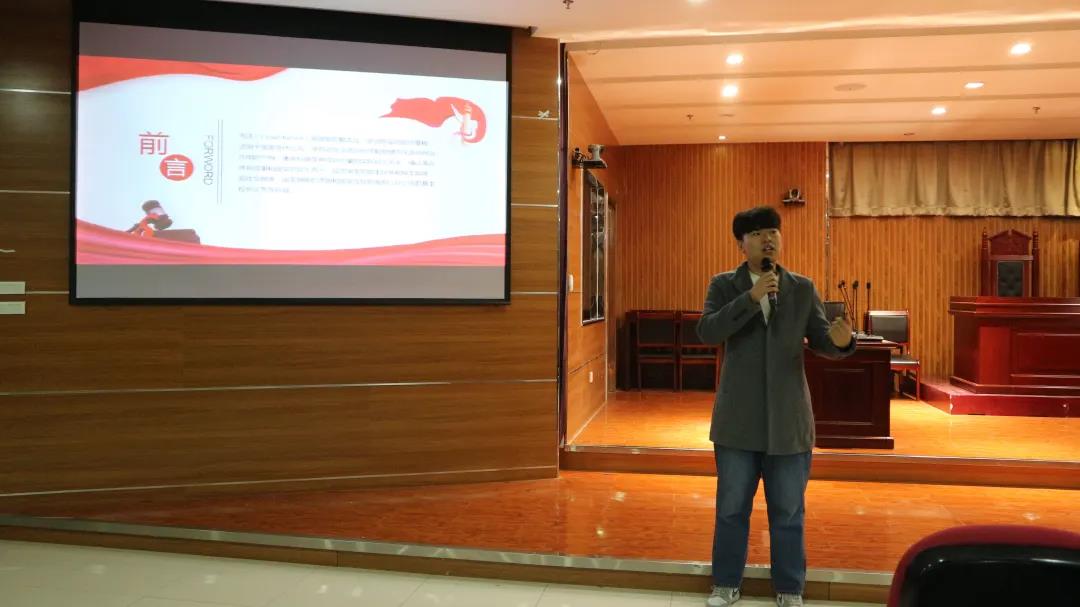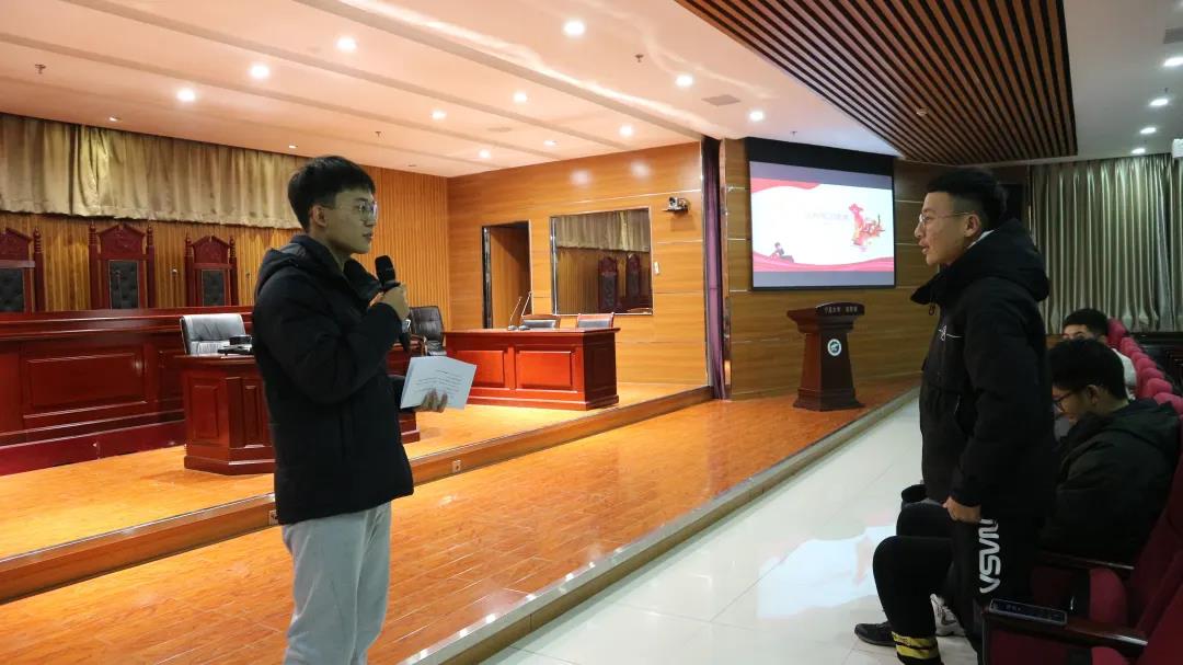 于12月4日晚七点在文荟楼模拟法庭举办了国家宪法日普法知识讲座活动。由来自2018级法学专业的李后龙、徐绍宇和谭旺三位同学为大家进行宣讲,全体2020级本科生到场聆听。
