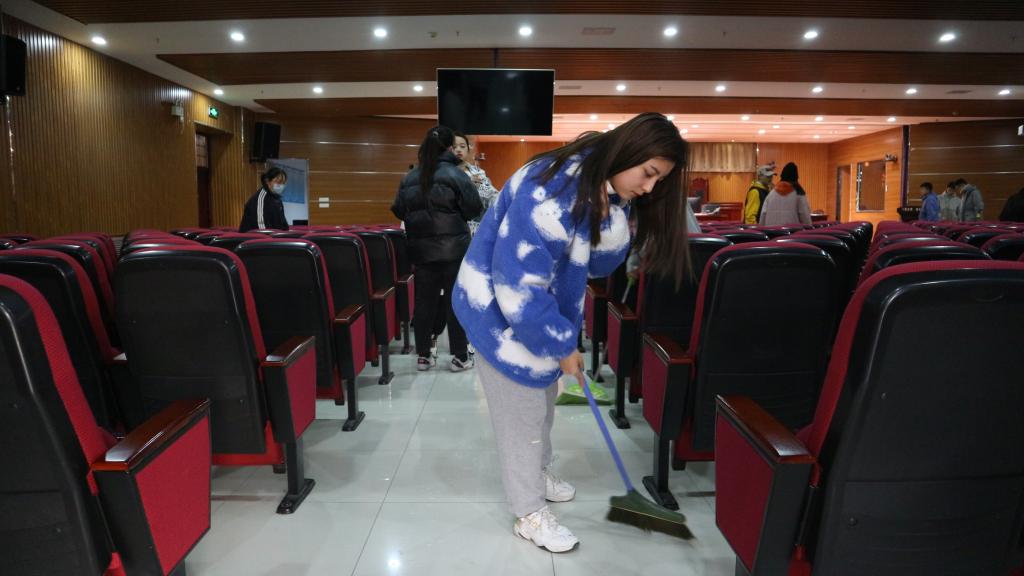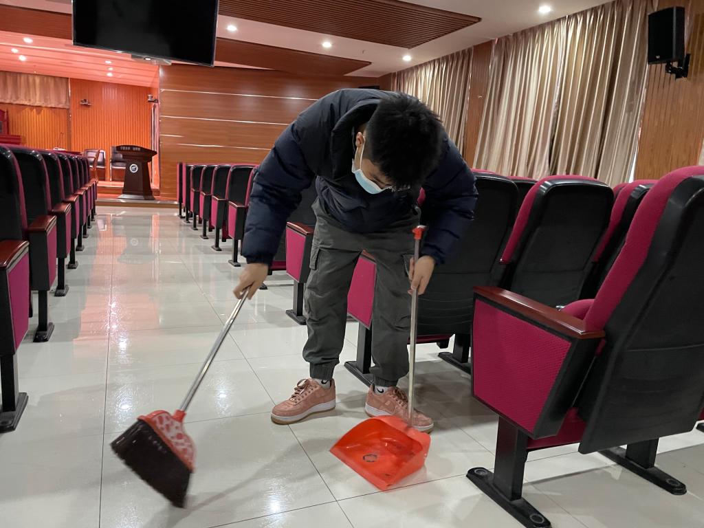 活动伊始,负责人简单介绍了本次活动的意义和主要内容,并为学员们分组分工。学员们秉承着“奉献、互助、友爱、进步”的志愿精神,彼此之间分工明晰、相互配合,充分运用手中的清扫工具积极的投入到清洁工作之中,不怕脏不怕苦不怕累。学员们来回忙碌的身影成为了文荟楼最靓丽的一道风景线。近一个小时的忙碌,随着最后一点垃圾清扫完毕,此次志愿活动圆满结束。
