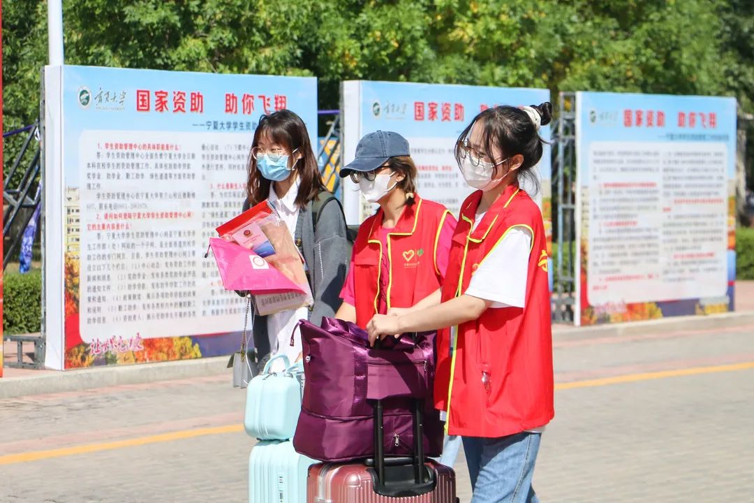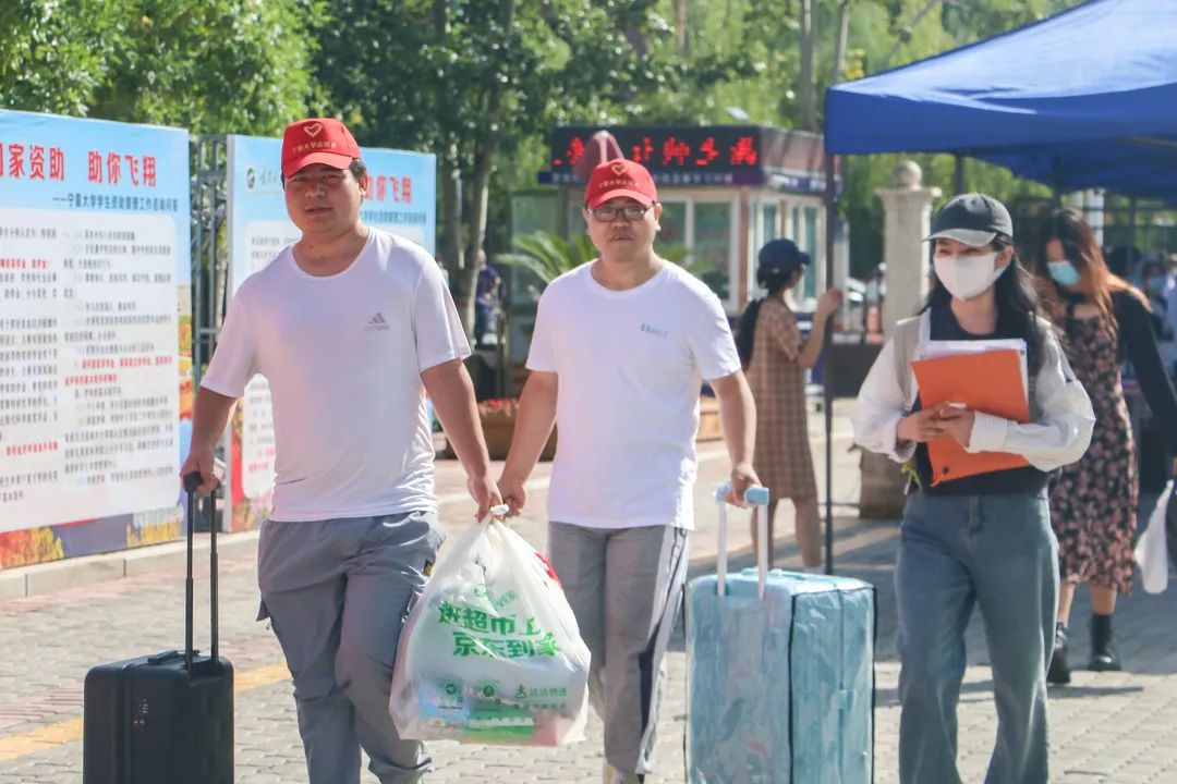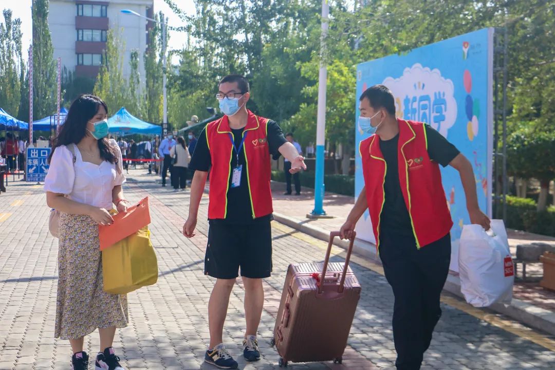迎来了来自全国各地的学生,他们怀揣满心的希望与期待,在这里他们即将开启全新的人生航程。志愿者们精神焕发,满心欢喜地迎接新同学的到来,他们接过新生们沉甸甸的行李,将爱与温暖传递给每一位新生。