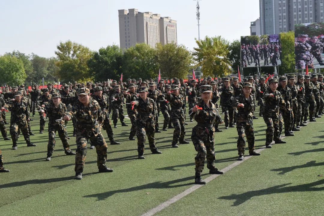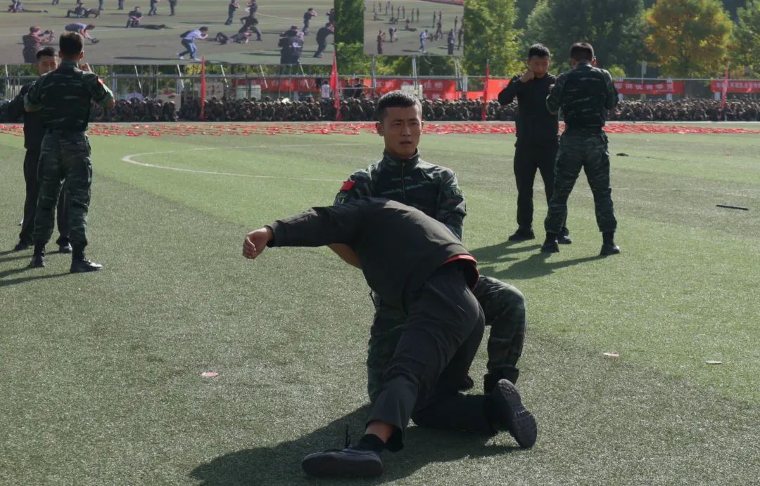 首先,校领导检阅参训方阵,各方阵喊话:“书记好!”“为校争光!”标兵就位后,各营连以分列式方阵走过主席台,步履矫健、整齐划一的队列方阵展现了青春学子的昂扬斗志;至此,本次军事展演正式开始。刺杀操方阵、擒敌拳方阵、防暴队、持枪战术方阵、匕首操方阵纷纷亮相。随后,教官制暴术表演、音乐学院合唱、体育学院合唱与武术表演更是将整场表演推向了高潮。学院党委书记潘瑞、院长吕耀军、党委副书记杨扬、团委书记兼学生工作办公室主任王嘉豫、辅导员付晓晨在现场观看了展演。