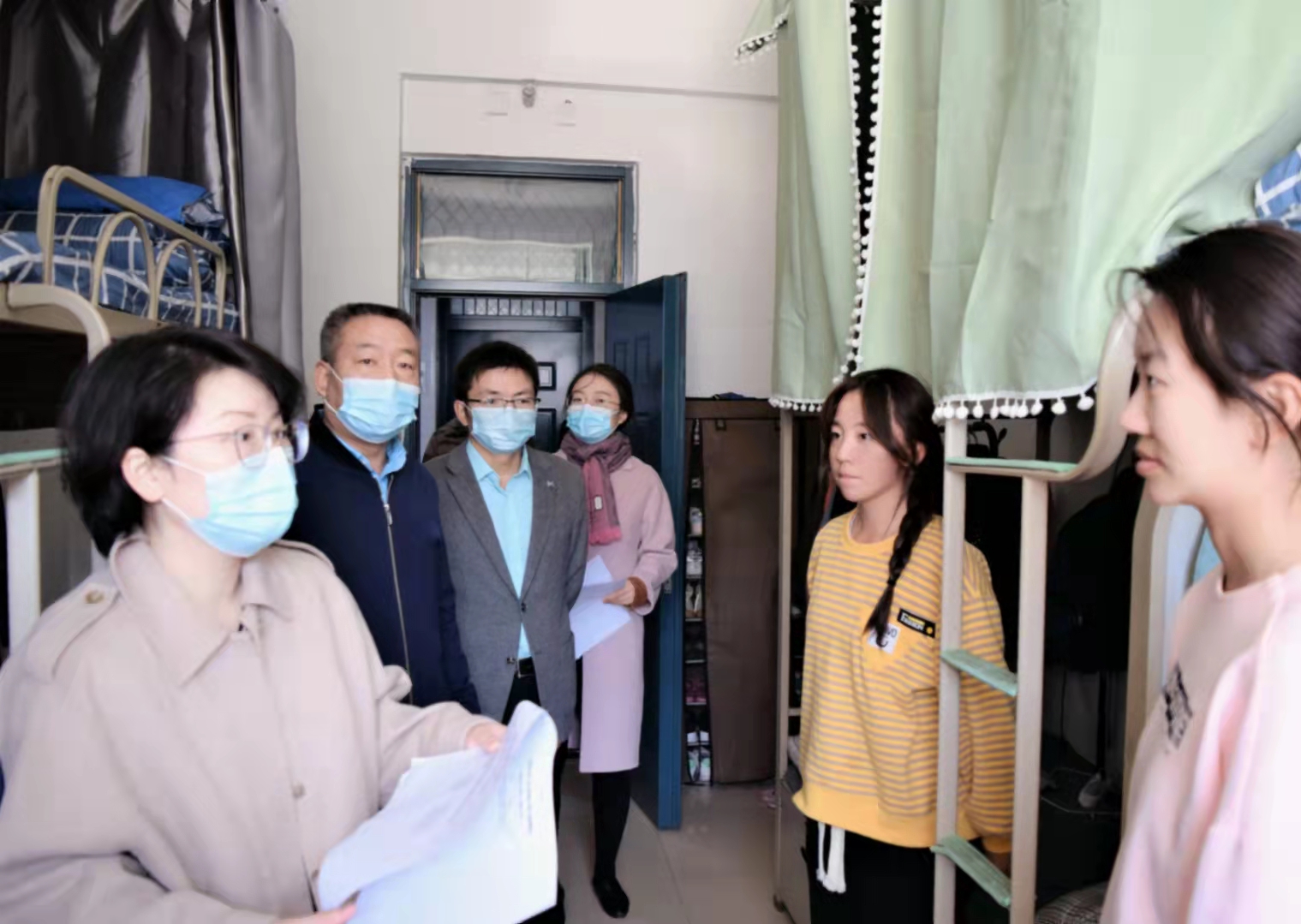 走访过程中,学院领导走进宿舍与学生们进行了亲切的交谈,详细询问了疫情期间学生们的思想动态,以及在生活和学习上遇到的困难和问题。叮嘱大家按时参加线上课程、注意寝室卫生、做好个人防护,鼓励学生之间要相互理解、相互包容,努力营造一个安全、卫生、文明、和谐的宿舍环境。希望同学们充分利用有限的学习时间,提升自身的专业知识水平,为将来的实习和就业打下坚实的基础。