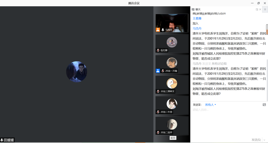 通过虚拟接待室的方式举办线上刑法案例研习活动。本次活动由马浩丹做主讲人,18av动漫
