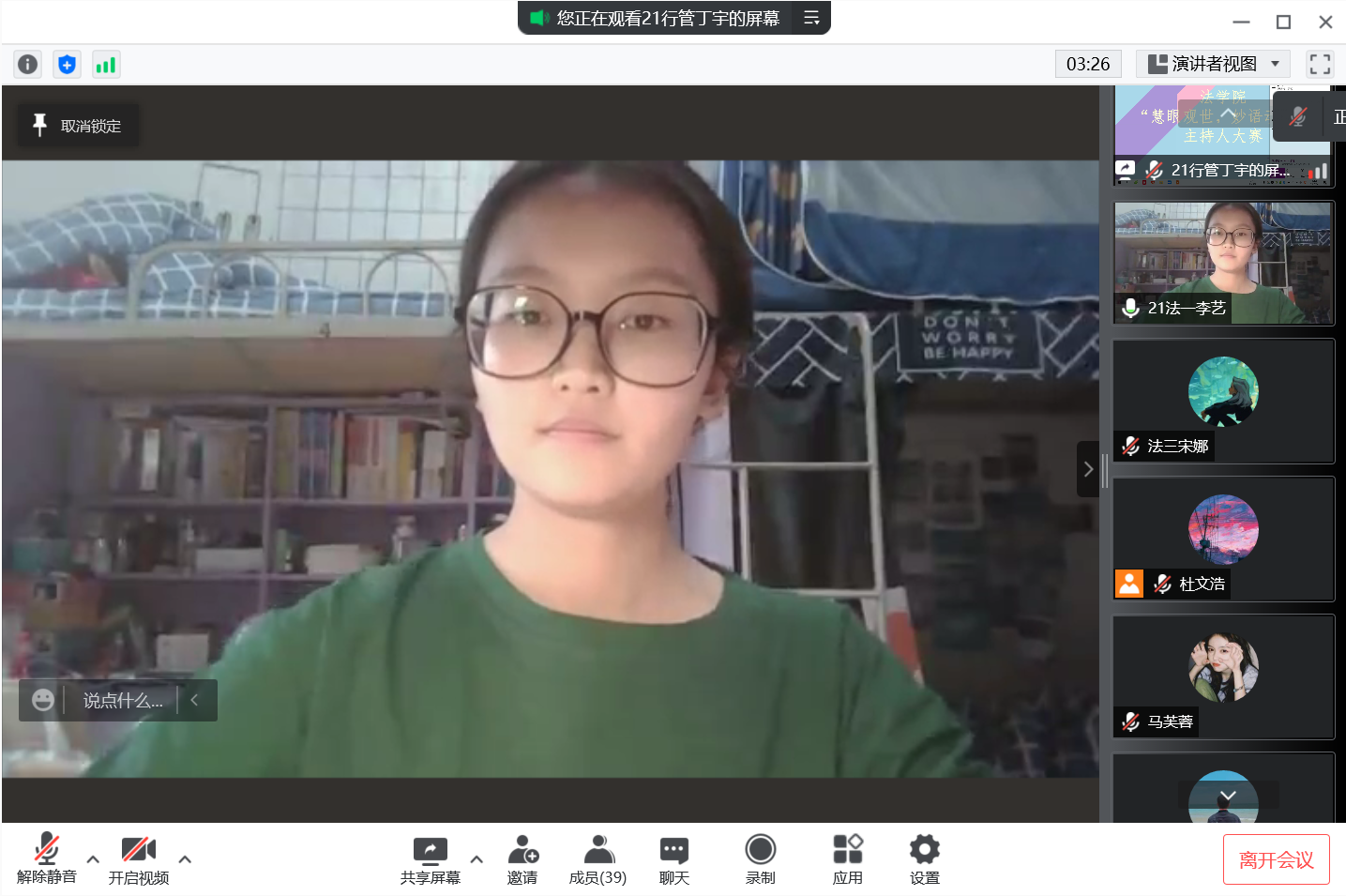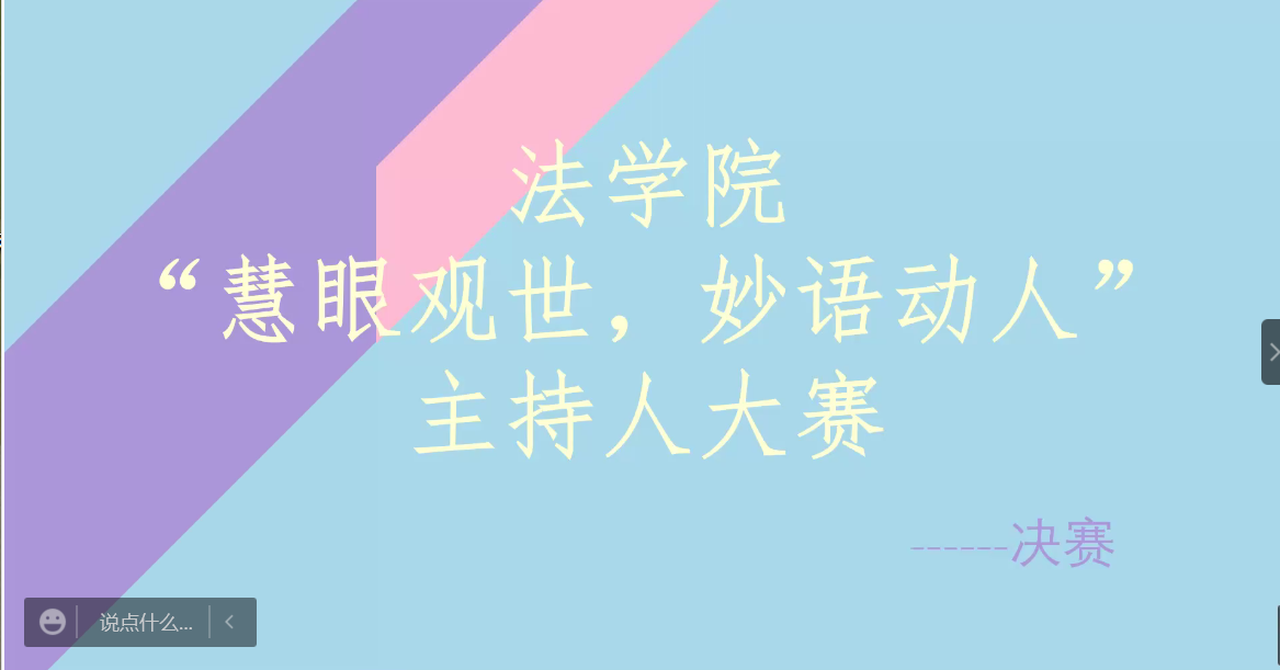 为进一步丰富疫情防控下的校园文化生活,挖掘新生主持人才,培养和锻炼学生语言表达能力,提升学生综合素养,4月4日晚,学院“慧眼观世,妙语动人”主持人大赛于线上成功举办。本届比赛由2021级李艺、陆嘉欣主持,部分学生作为观众线上参加。