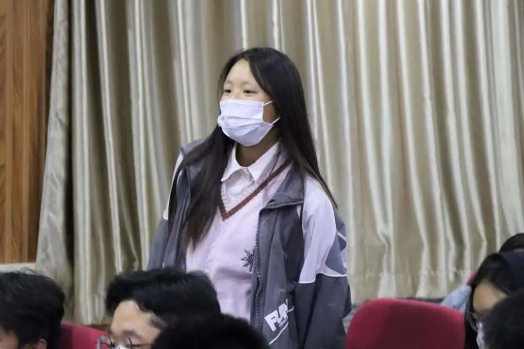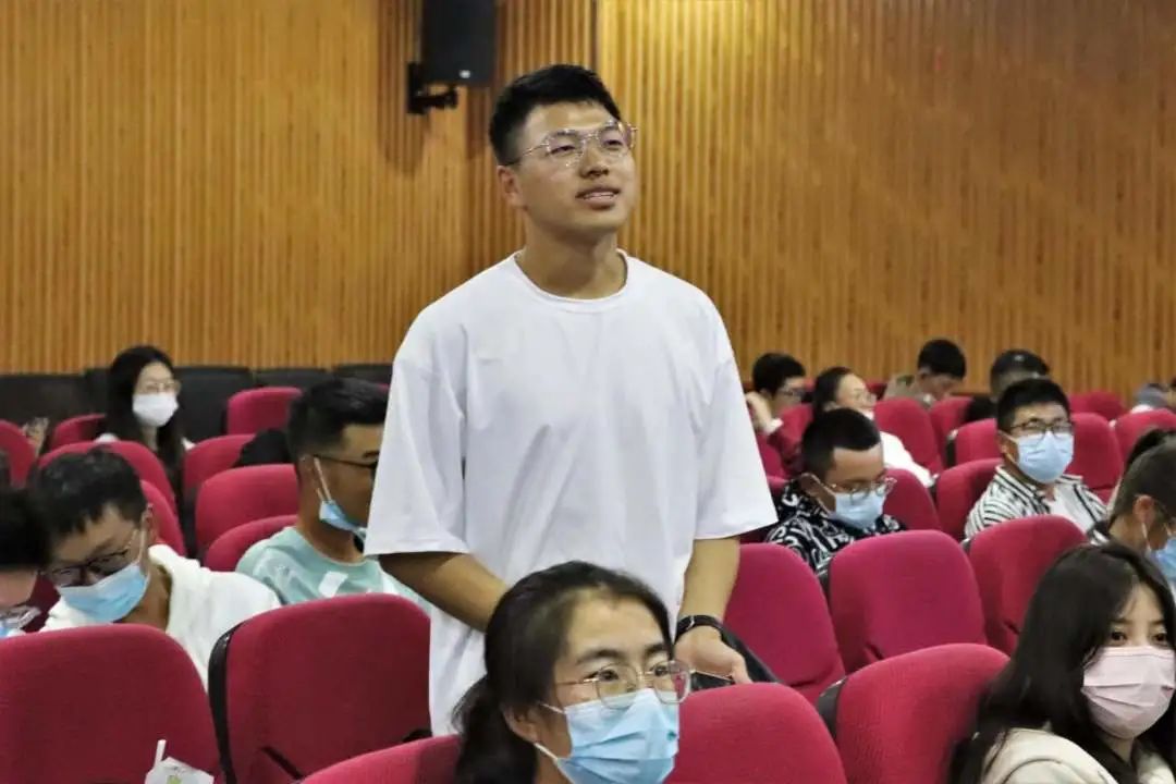2021级本科生金晶分享了自己大学一年的体会与感受,与在场同学热情互动,使新同学对大学生活充满期待。