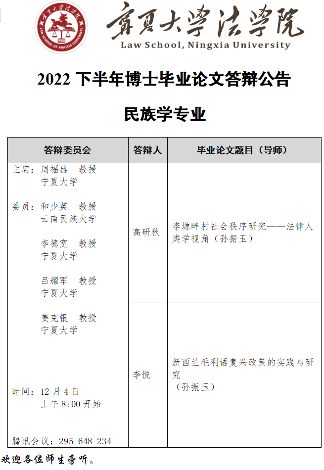 18av动漫 民族学专业2022下半年博士毕业论文答辩公告