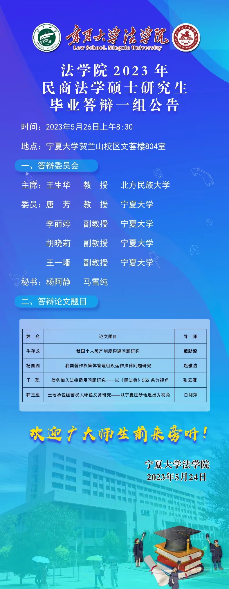 18av动漫 2023年民商法(一组)硕士研究生毕业答辩公告