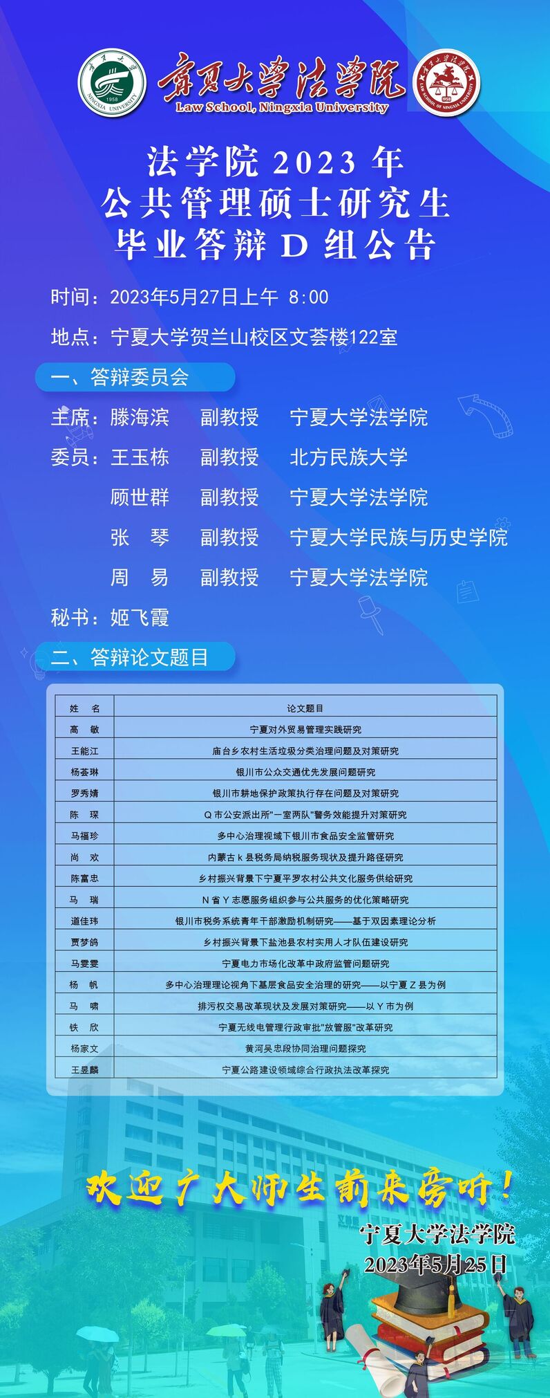 18av动漫 2023年公共管理硕士研究生毕业答辩D组公告