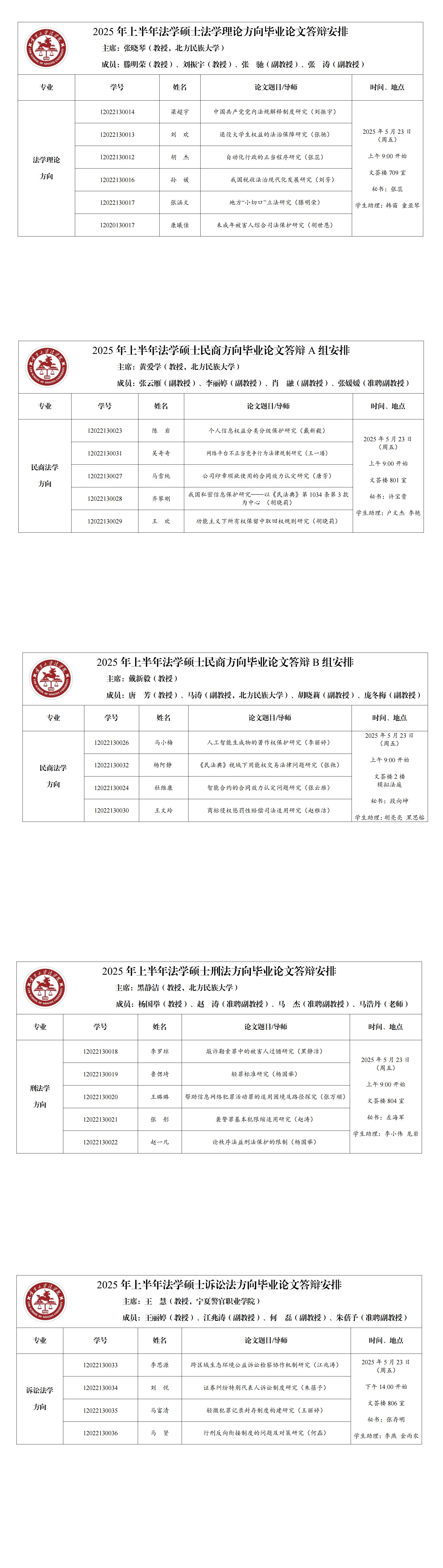 2025年上半年法学硕士毕业论文答辩公告