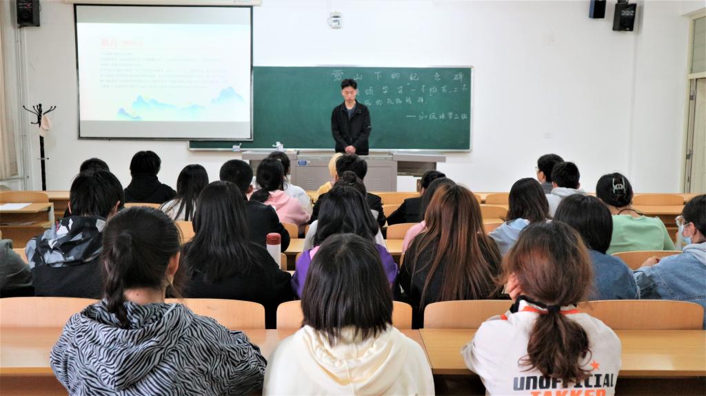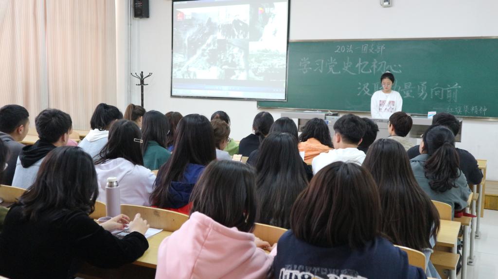 活动中,各班围绕主题选择了不同的学习研讨内容,2020级法学一班主要学习河南省林县人民“自力更生,艰苦创业,团结协作,无私奉献”的红旗渠精神;法学二班集中学习了“雪山下的纪念碑传颂‘两路’精神”,并深刻挖掘“两路”精神的时代价值;行政管理班通过讲述巾帼英雄的故事,号召同学们学英雄精神,做时代栋梁;社会学班就“青年人为什么学习党史”展开热烈讨论,深刻认识开展党史学习教育的重大意义。