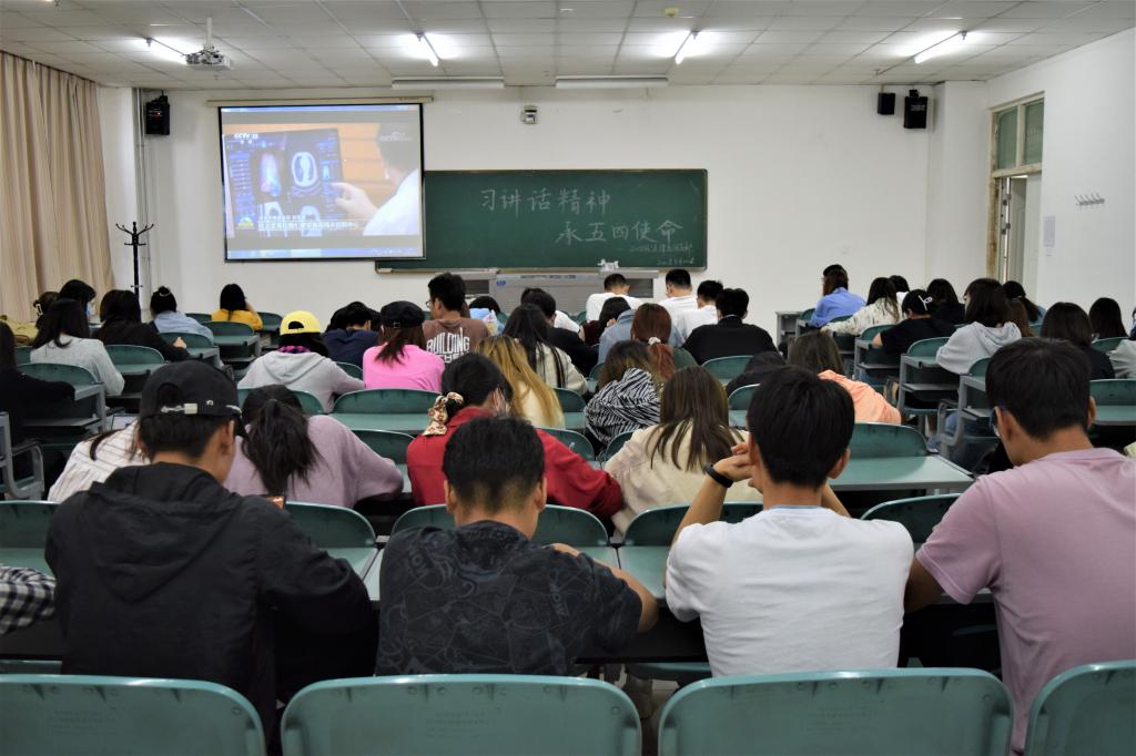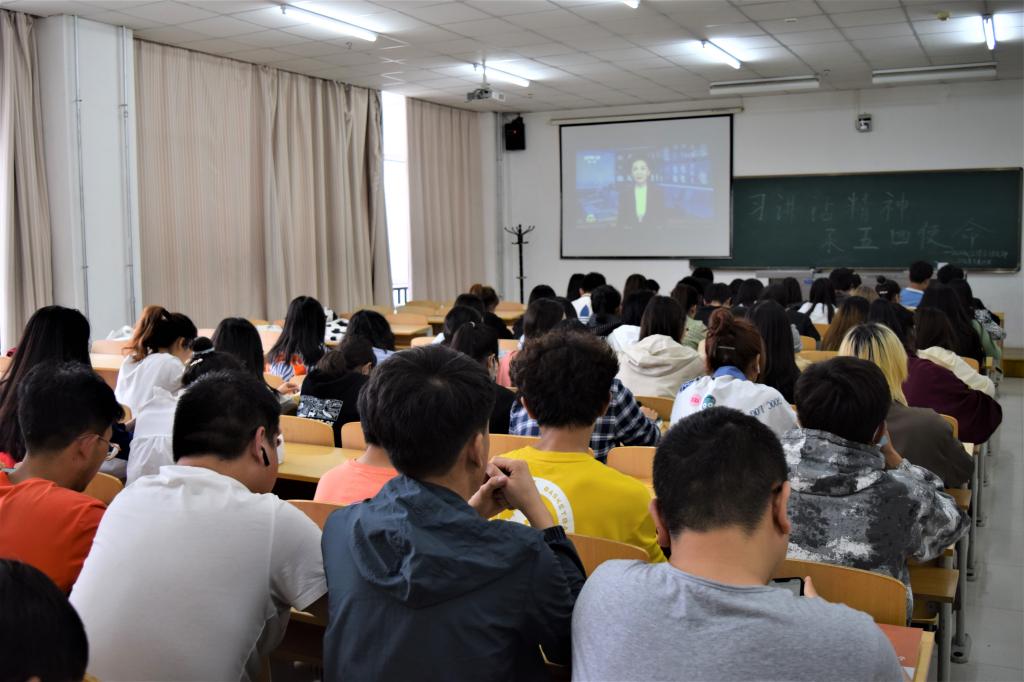 在主题团日活动中,各班团支部集体观看了习近平总书记考察清华大学时的讲话视频。习近平总书记在讲话中指出,“广大青年要肩负历史使命,坚定前进信心,立大志、明大德、成大才、担大任,努力成为堪当民族复兴重任的时代新人,让青春在为祖国、为民族、为人民、为人类的不懈奋斗中绽放绚丽之花。”习近平总书记对青年的殷切嘱托饱含深情,为万千学子勇毅前行注入了强大动力。同学们纷纷表示,要时刻把爱国和奋斗紧密结合起来,继承和发扬五四精神,把个人理想追求融入党和国家事业中,把自身前途命运同国家和民族前途命运紧紧联系在一起。