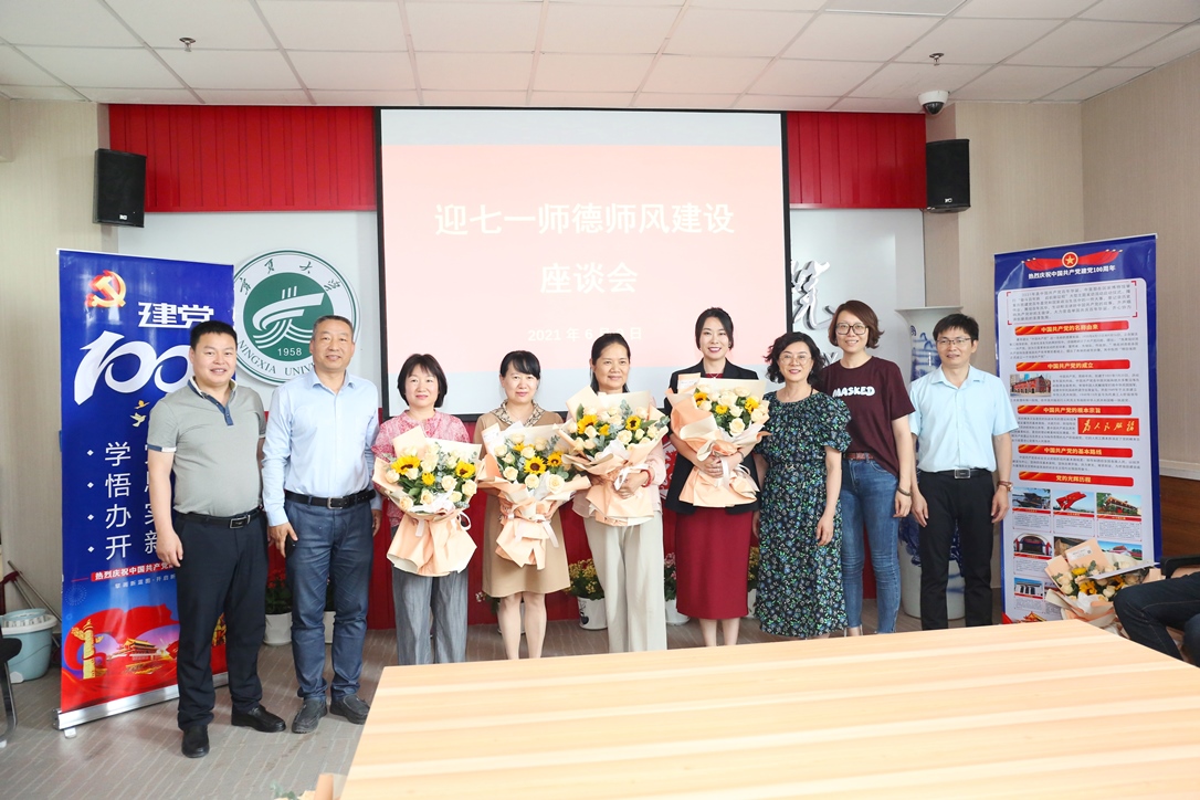召开迎“七一”师德师风建设教师座谈会。会议表彰了2020年度院级 “我心目中的好老师”、教学优秀奖、科研及服务地方突出贡献奖及工会工作积极分子奖教师,学院领导慰问了25年以上党龄的教师党员、党外教师代表、新引进博士代表。