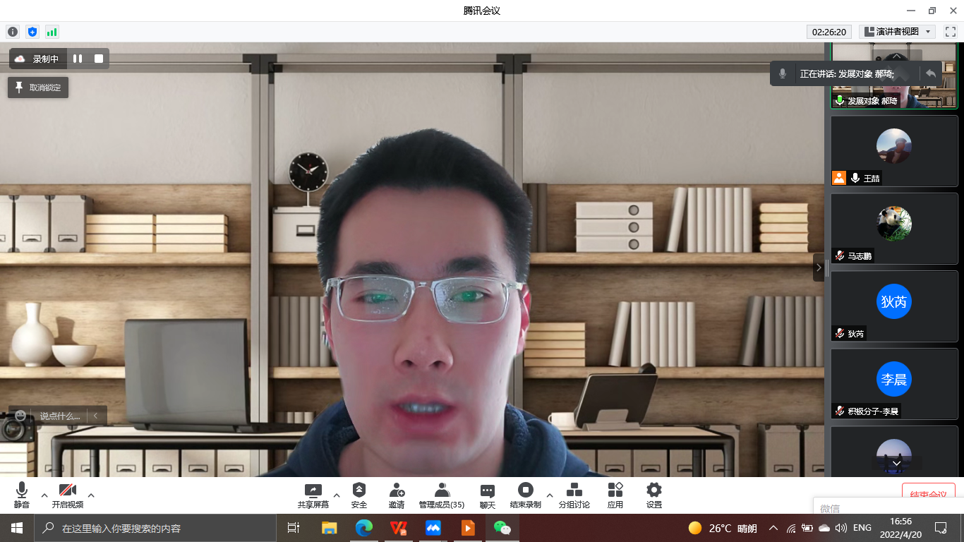 为不断加强支部入党积极分子和发展对象党性教育,引导支部党员、发展对象和入党积极分子进一步坚定理想信念,增强党支部的战斗堡垒作用,哲学与民族学研究生党支部于2022年4月20日下午3点在文荟楼806会议室,以线上线下相结合的方式,召开第四十一期入党积极分子、第十五期发展对象座谈会。