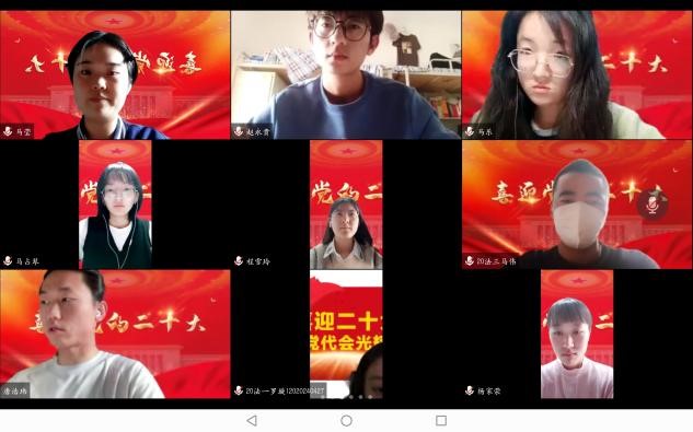 最后,由赵永贵、李勇杰、杨佳丽、柴李娜等36位同志作交流研讨。围绕党的二十大报告的主题、“三个务必”、“马克思主义中国化时代化新境界”、“中国式现代化”、“实施科教兴国战略”等内容依次进行了交流分享,畅谈在新时代新征程中作为一名共产党员的使命任务,并表示要进一步增强思想自觉、政治自觉、行动自觉,立足实际,立足本职,将报告提出的一系列重大战略部署、重大举措落实到具体学习工作中。
