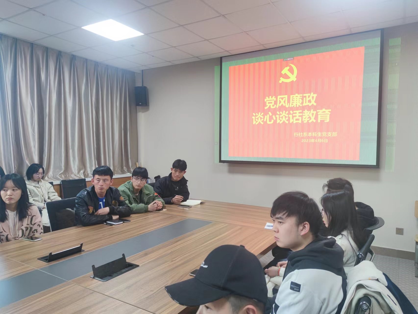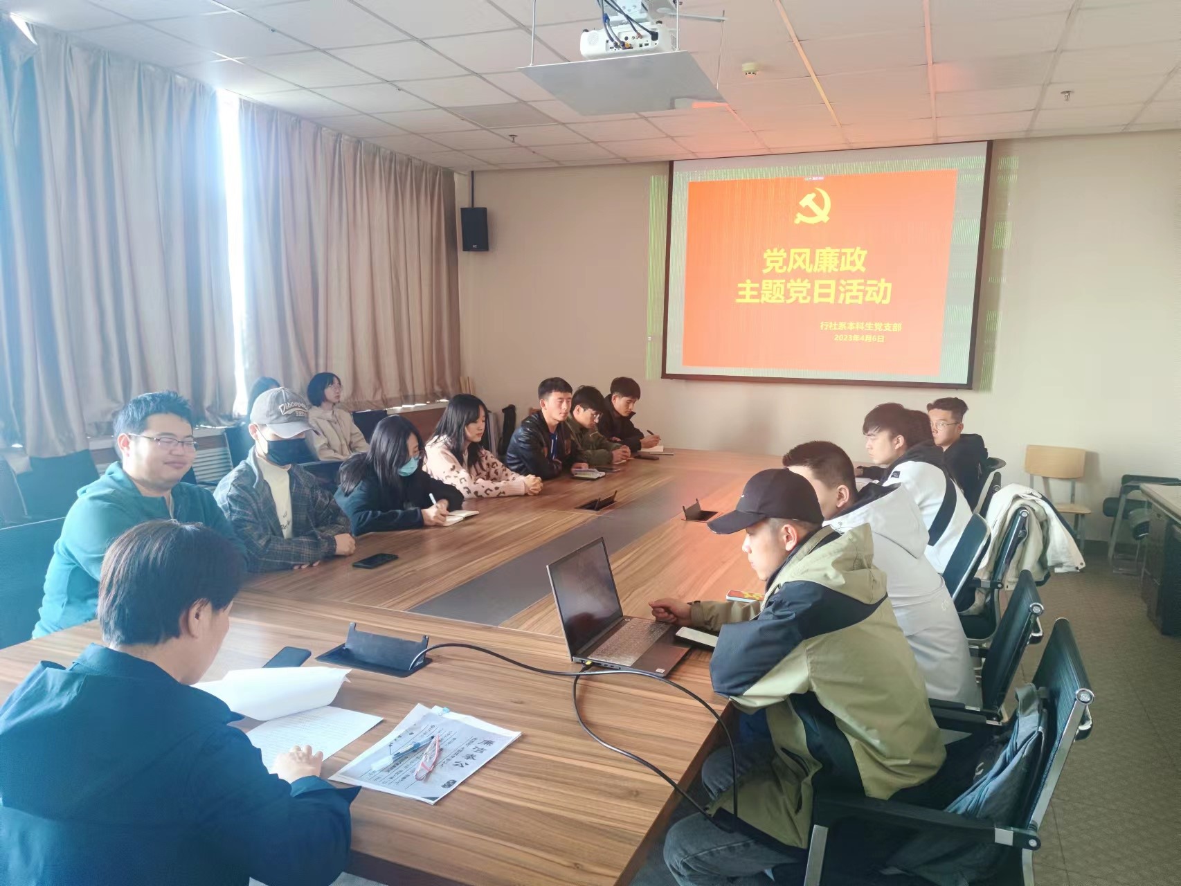 为深入学习贯彻党的二十大和二十届中央纪委二次全会精神,2023年4月6日,行政管理与社会学系本科生党支部组织开展“党风廉政”主题党日活动和廉政谈心谈话活动,本次活动由支部书记武玲娥主持,全体党员以线下、线上方式参加了活动。